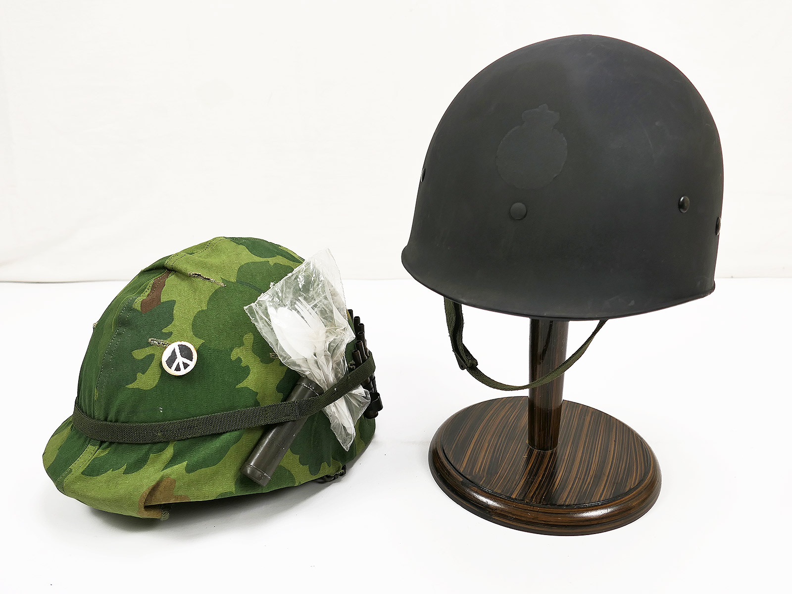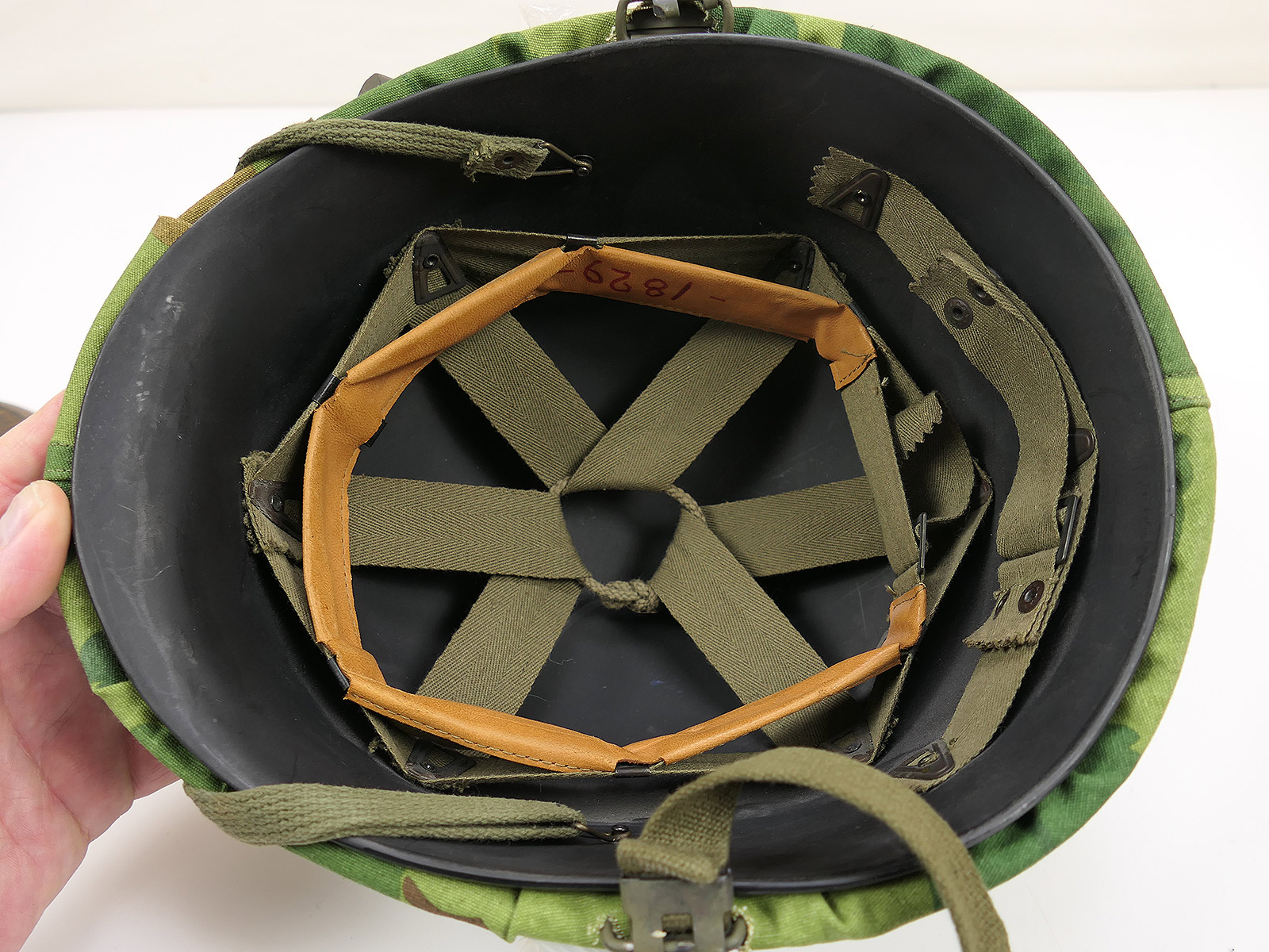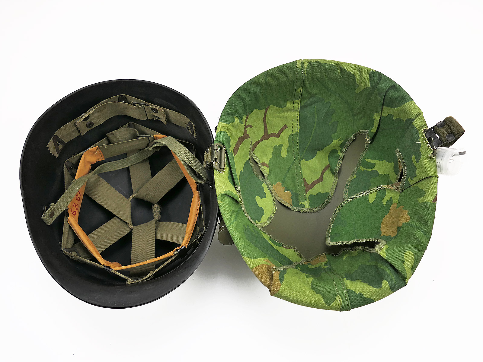 US M1 steel helmet Vietnam with Mitchell helmet cover helmet liner, accessories + belt piece