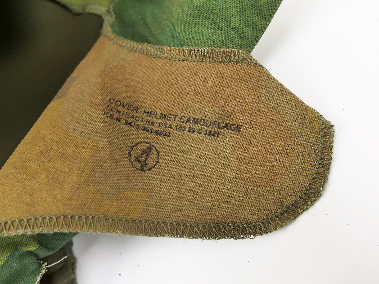 US M1 steel helmet type Vietnam, with inner helmet / liner and repro Mitchell helmet camouflage cover leaf pattern,