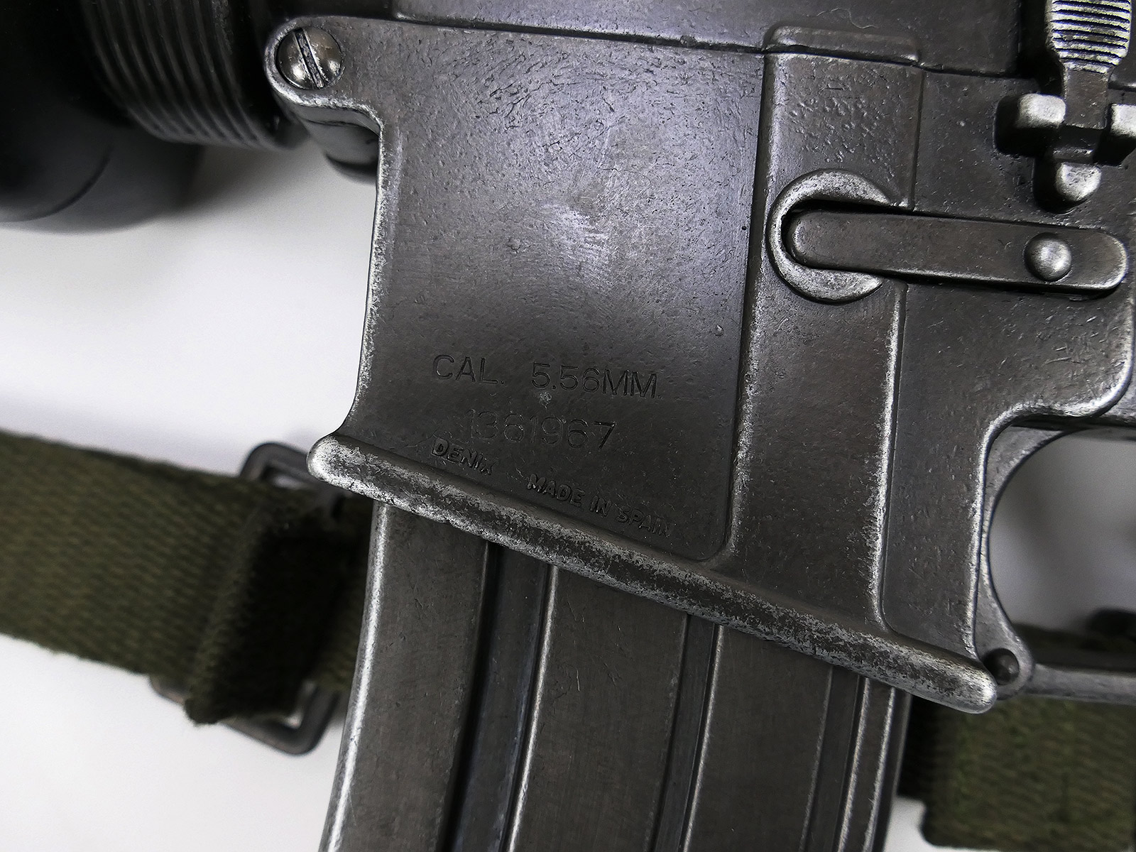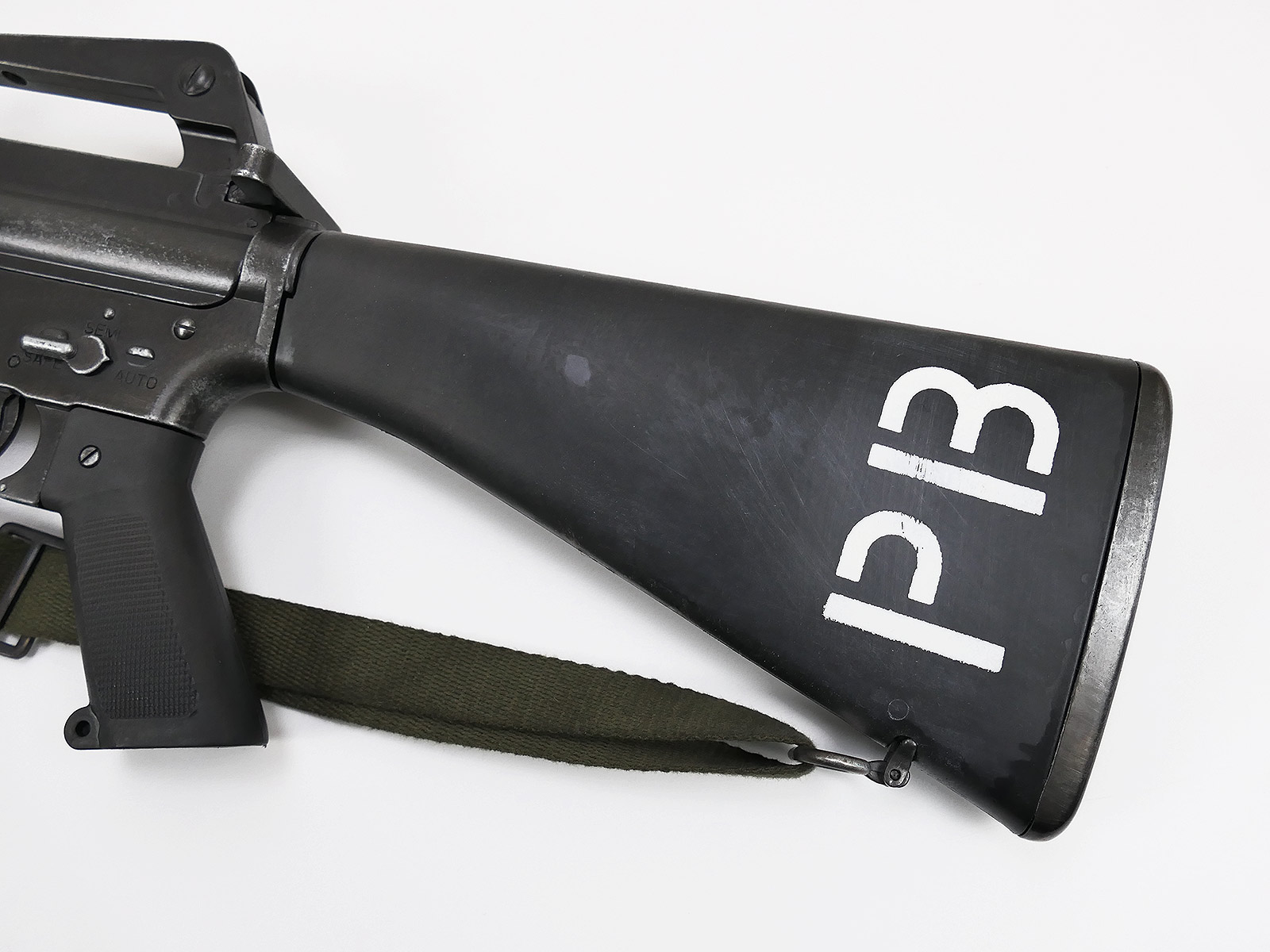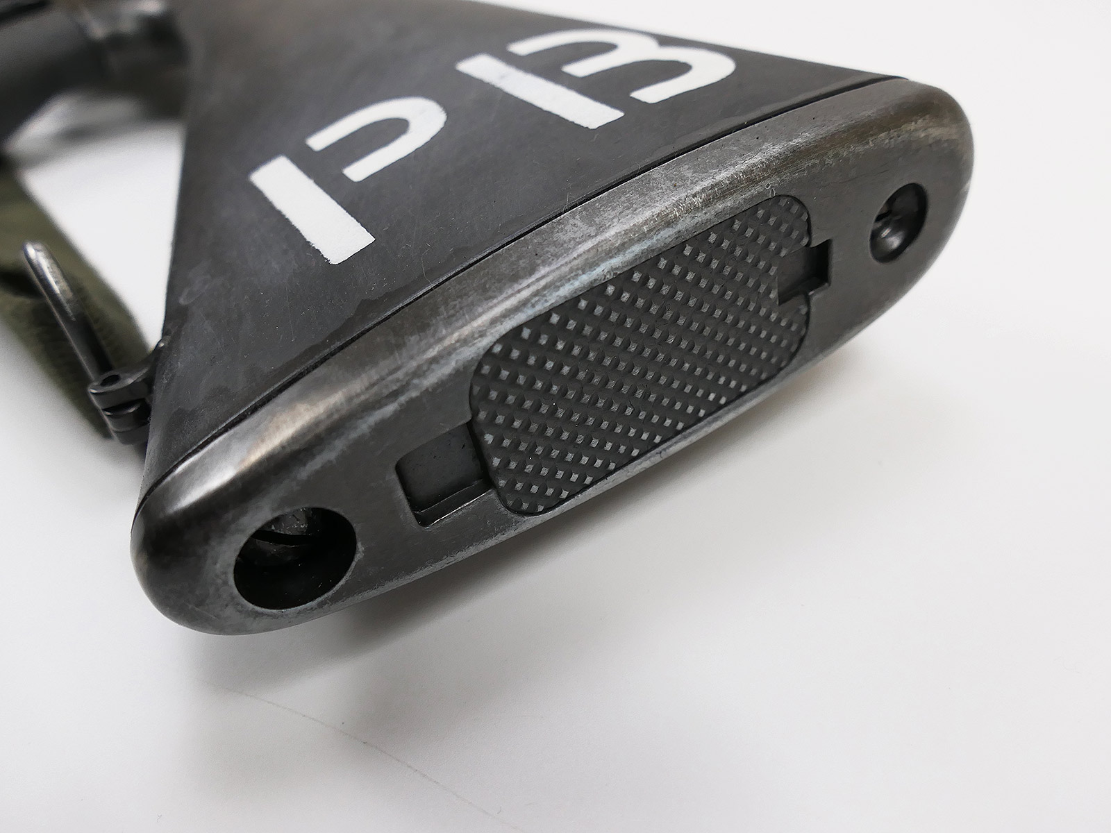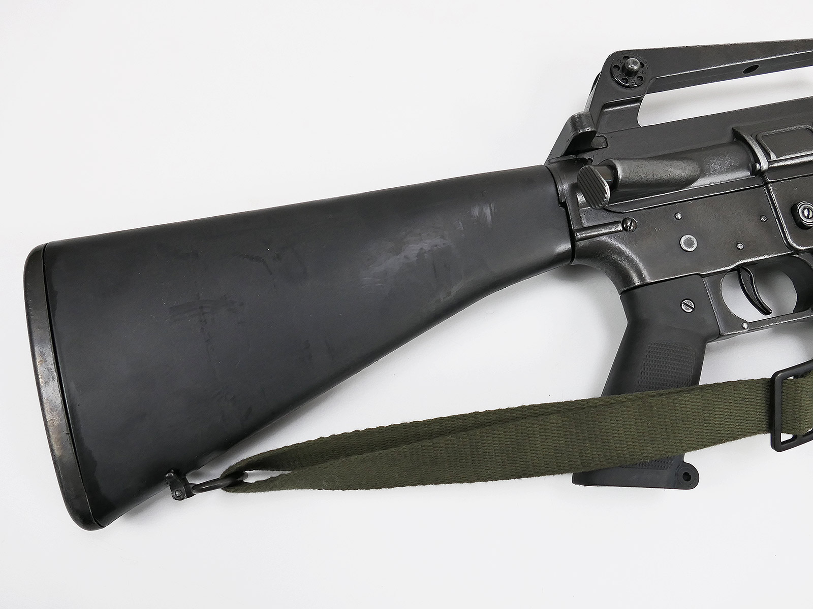 Armory number painted on the shoulder stock with stencil, cotton carrying strap in olive.