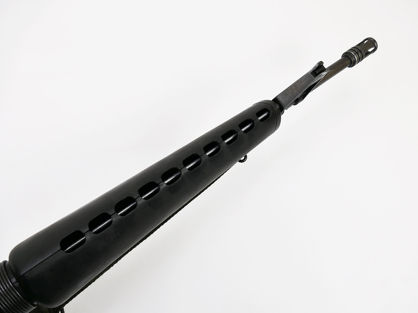 Material: Handguard and shoulder stock made of plastic, barrel, magazine and receiver made of metal.