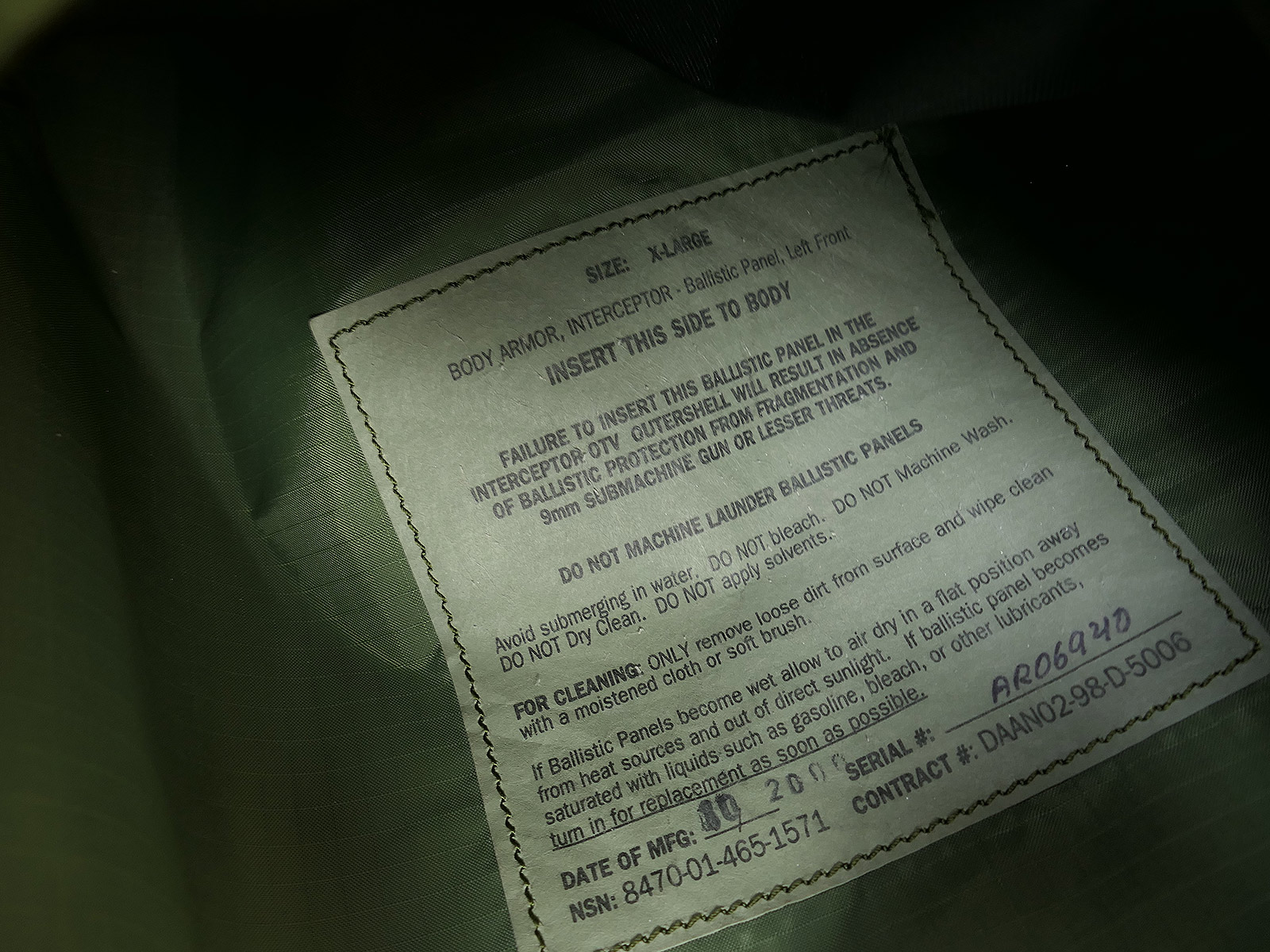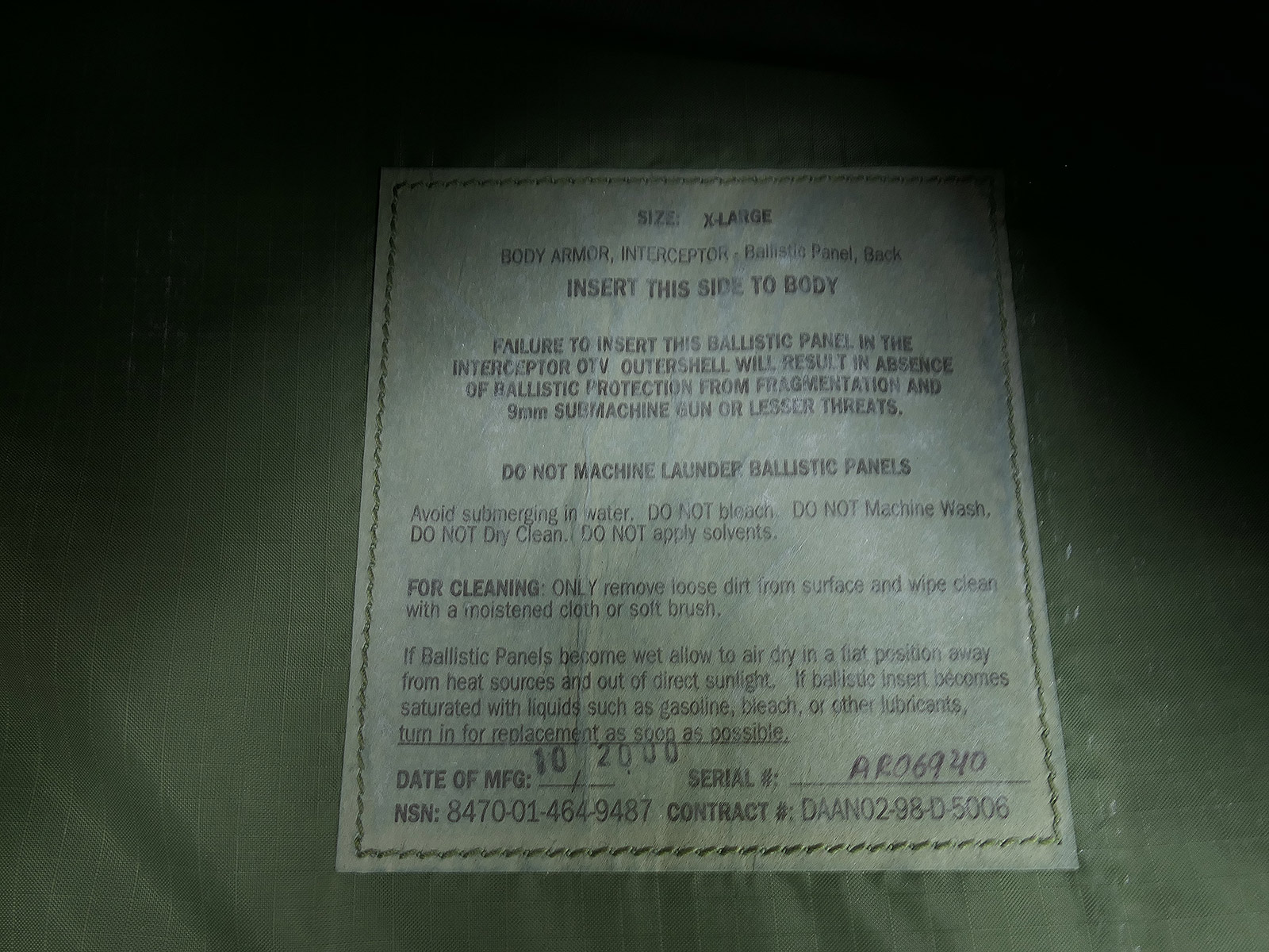 US Point Blank Interceptor body armour insert waistcoat size XL with ballistic inserts