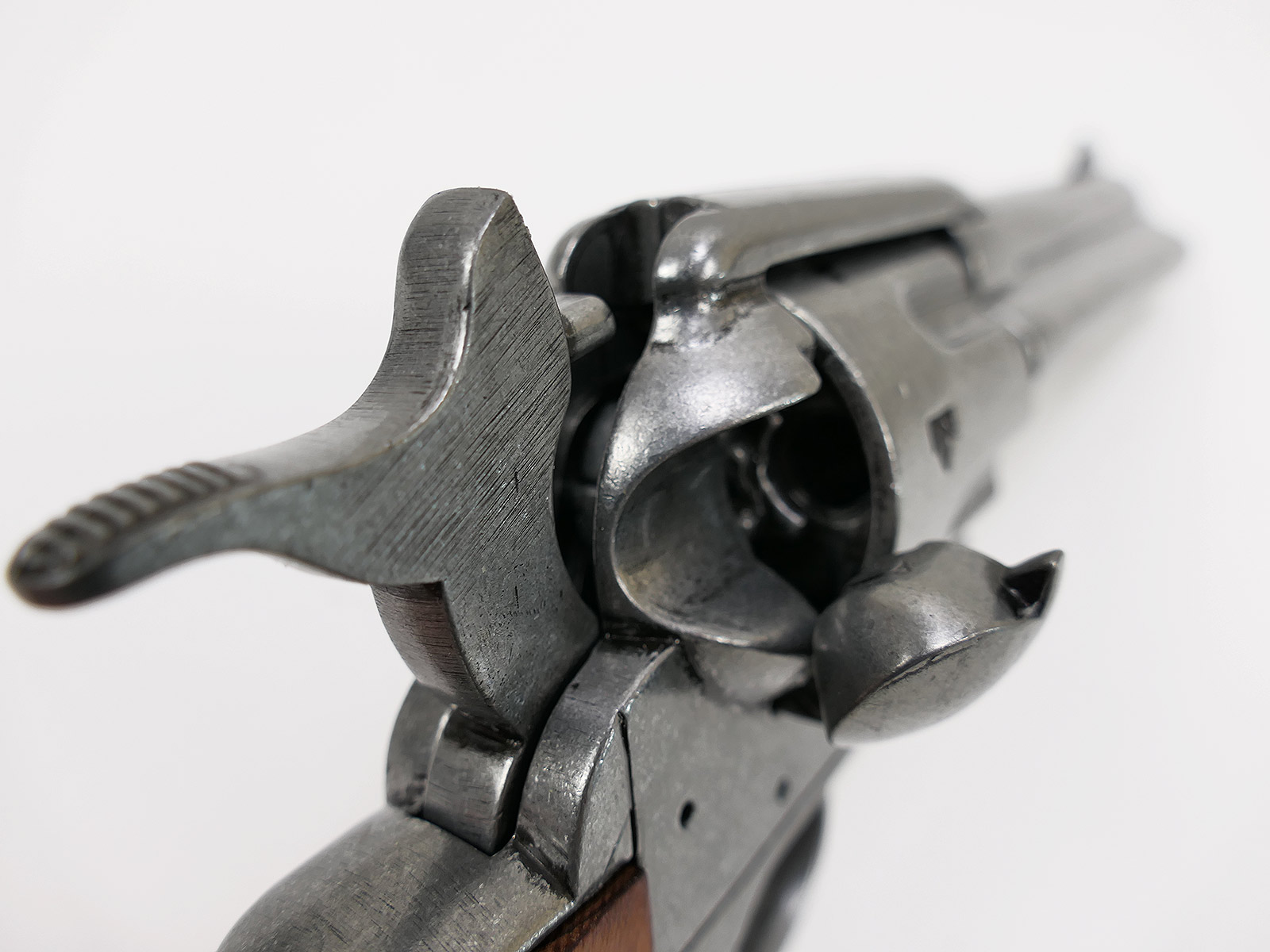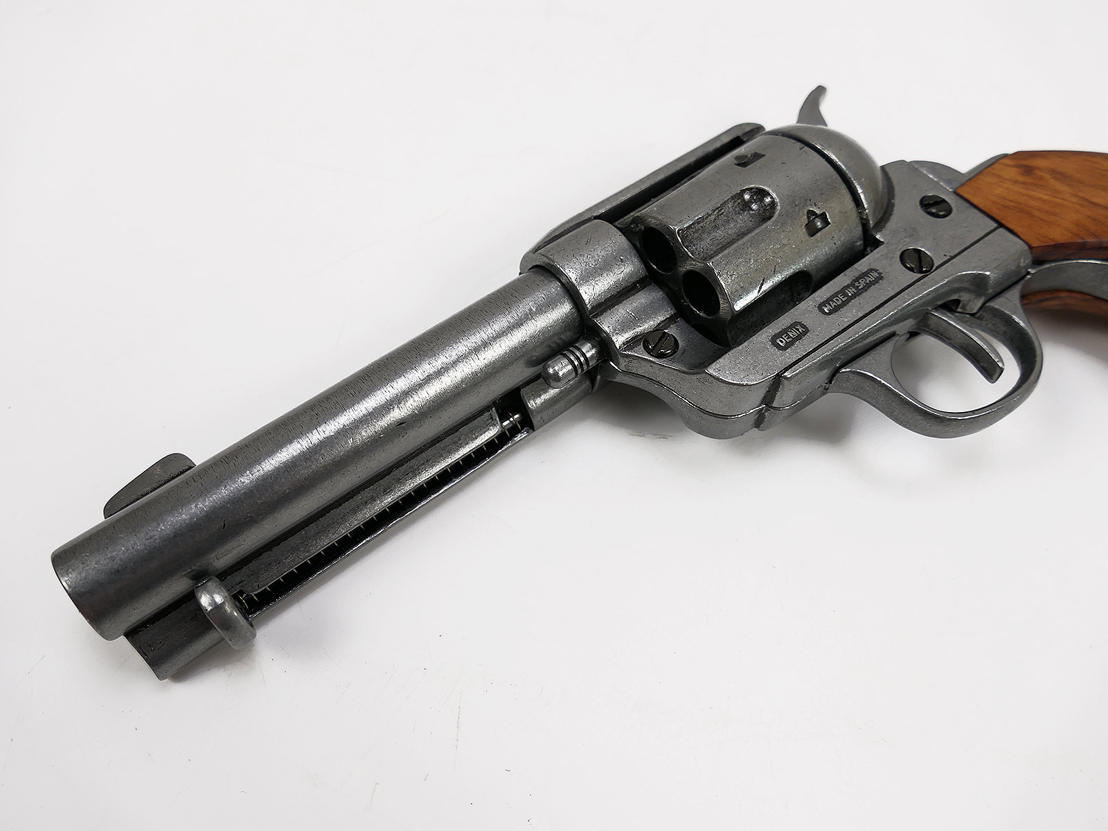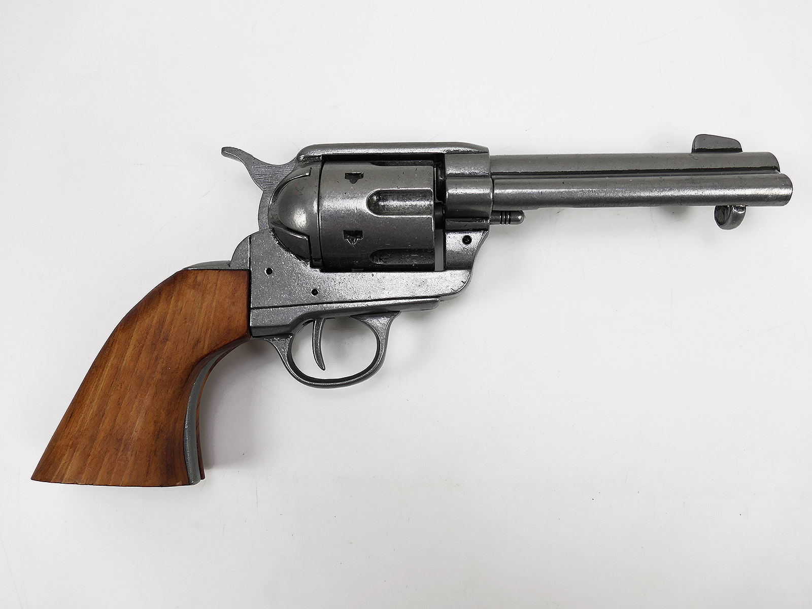 US Revolver .45 Caliber PEACEMAKER 1873 4,75" kurzer Lauf Deko Modell braune Holz Griffschalen