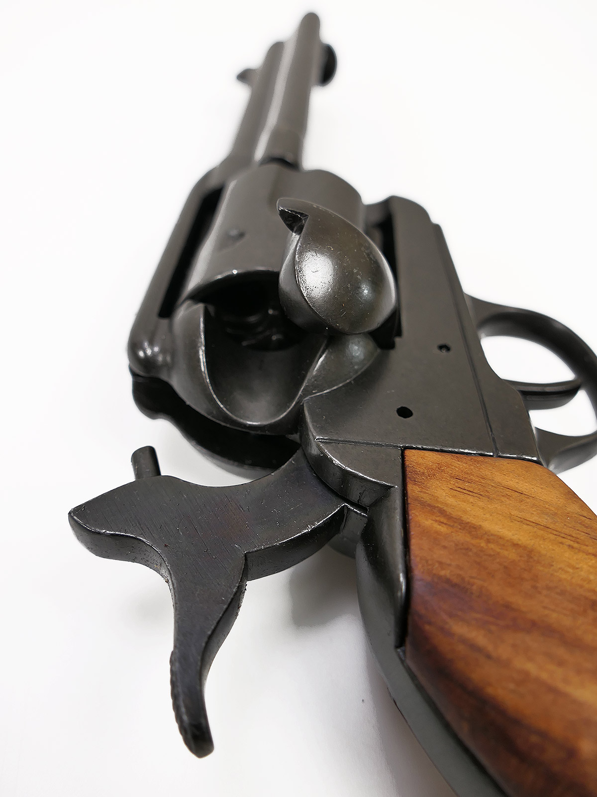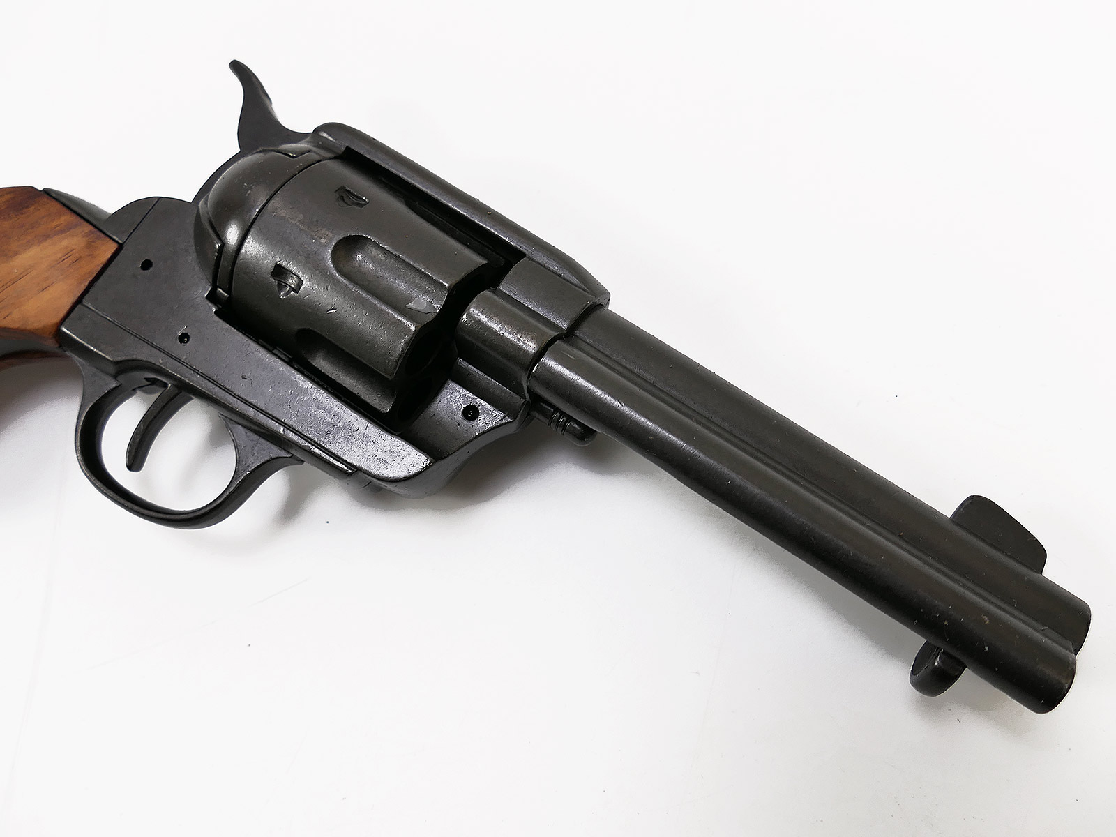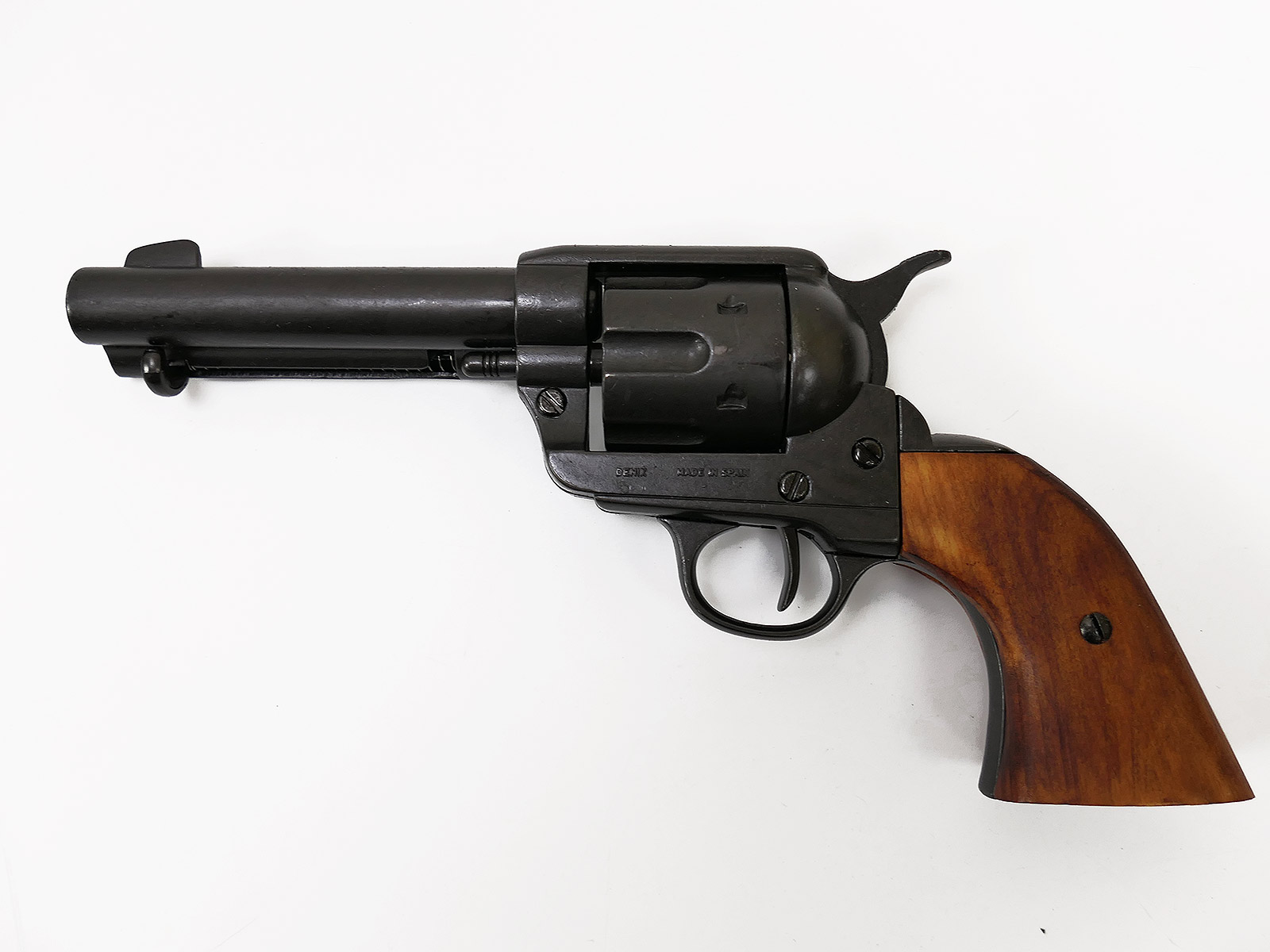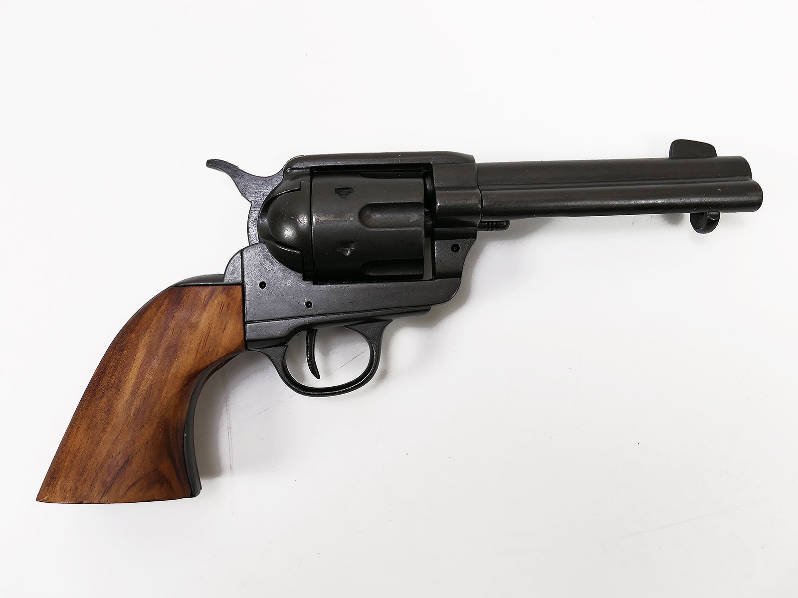 US Revolver .45 Caliber PEACEMAKER BLACK 1873 4,75" kurzer Lauf Deko Modell braune Holz Griffschalen