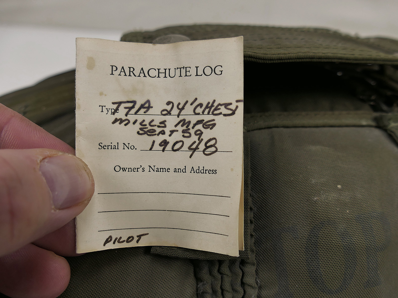 US Vietnam Special Forces T7A Reserve Fallschirm AUG. 1959 für T10 Parachute aus SAMMLUNG