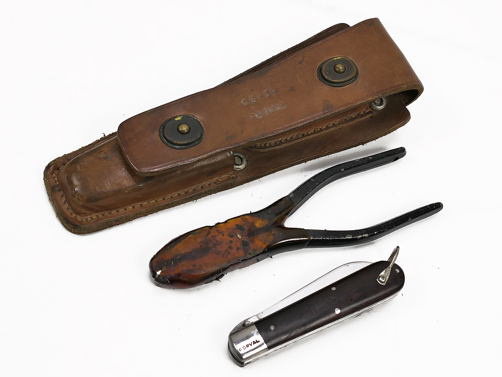 Properties "US WW2 Signal Corps Engineer Tool Kit CS-34 FORVAL pouch with pocket knife & pliers knife & pliers COLLECTION"