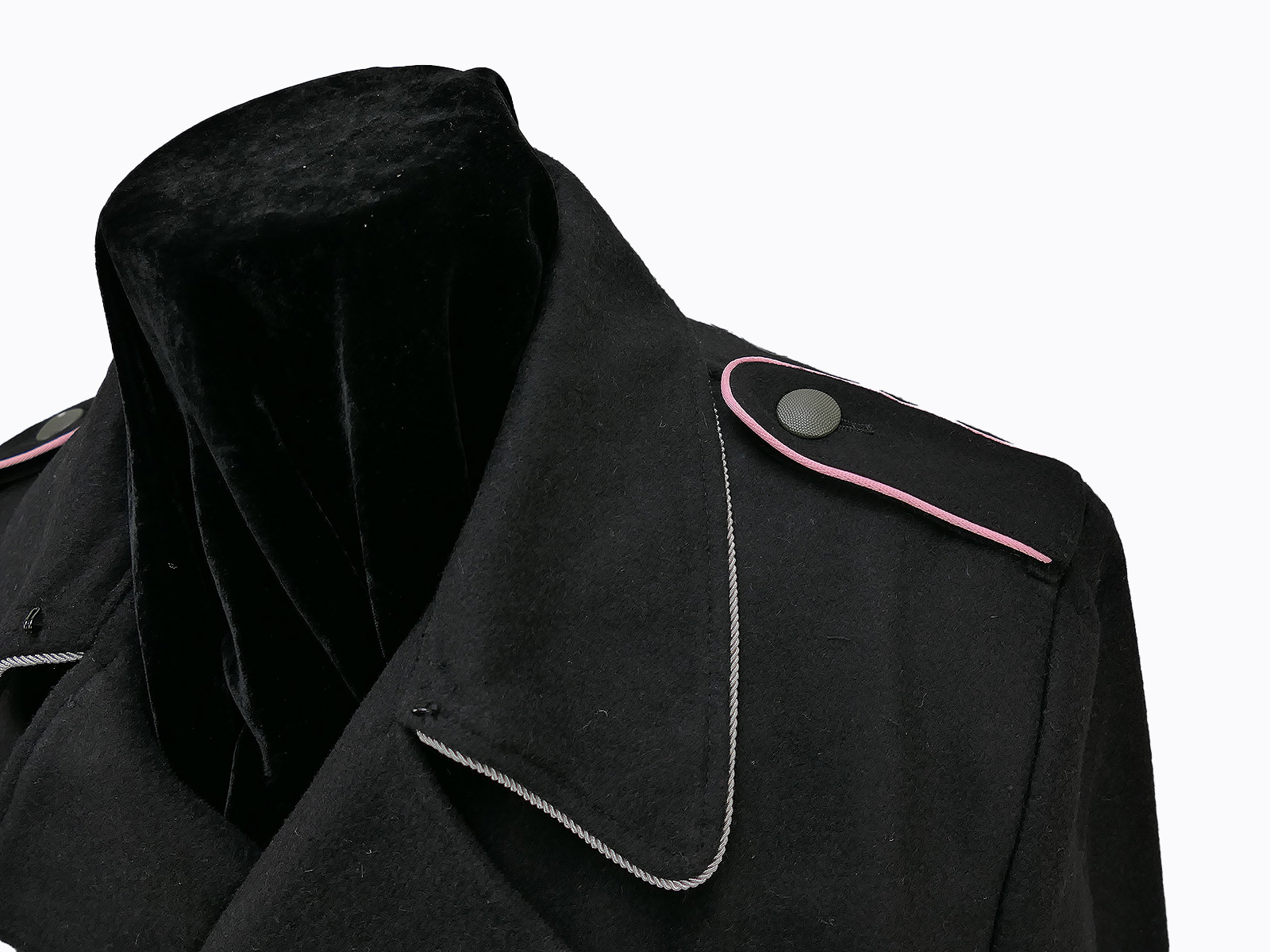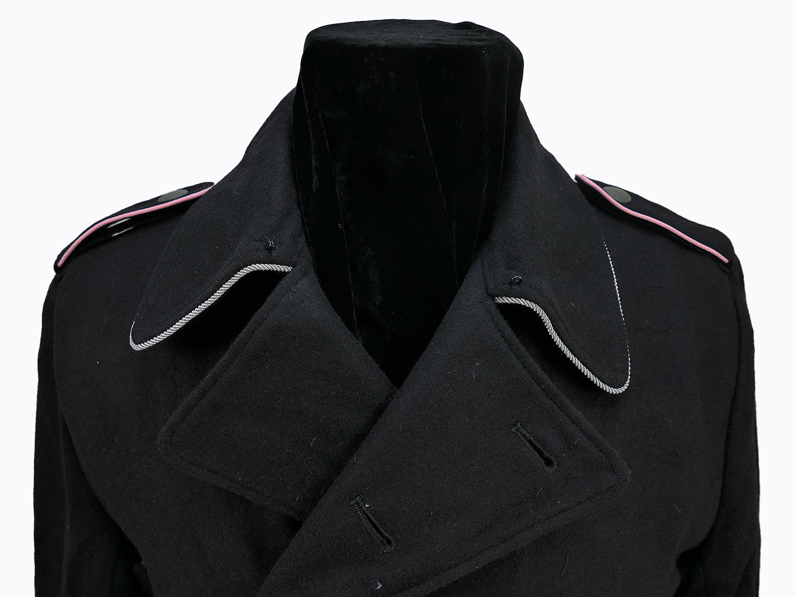 With epaulettes and silver officer's collar braid.