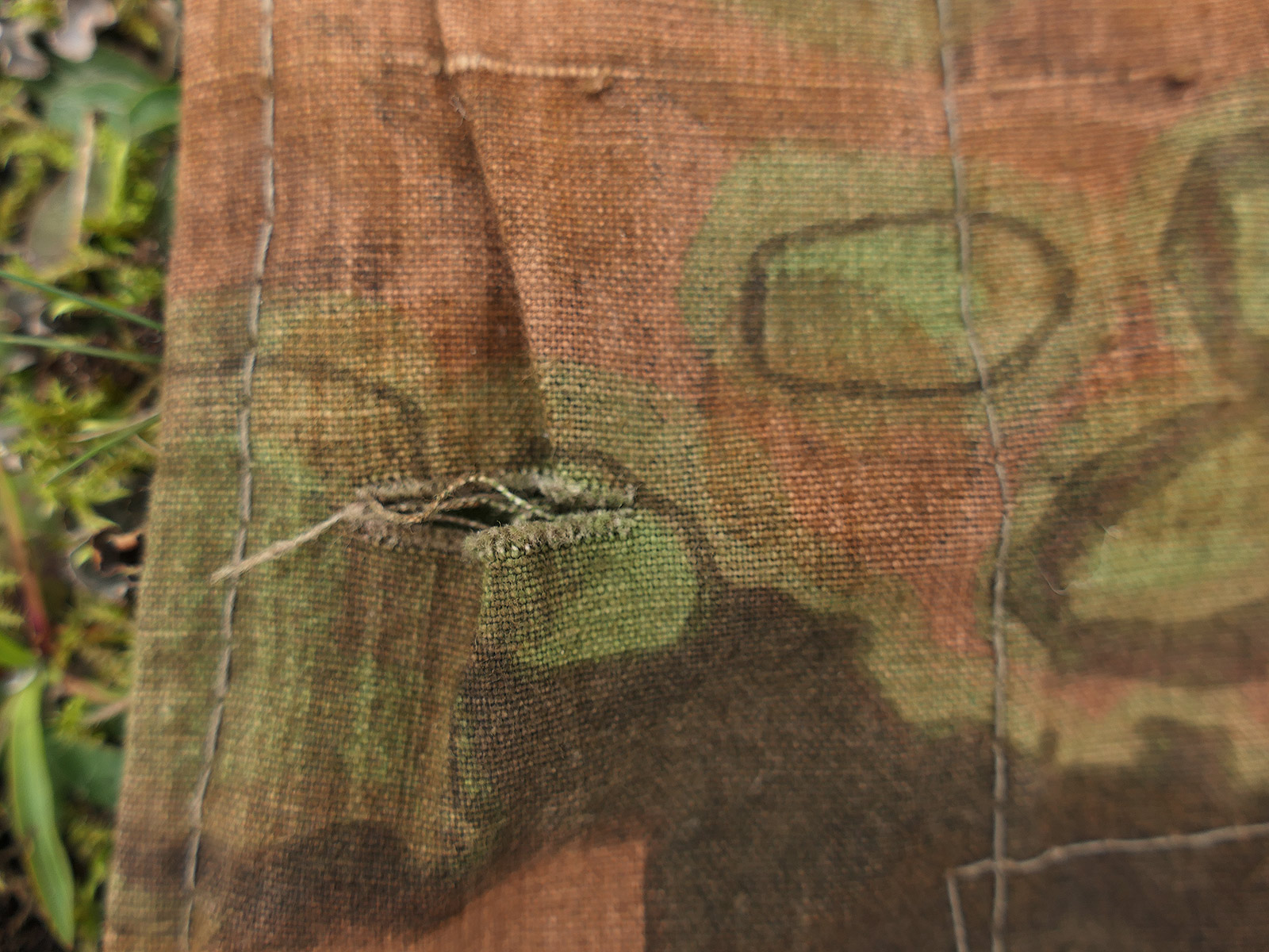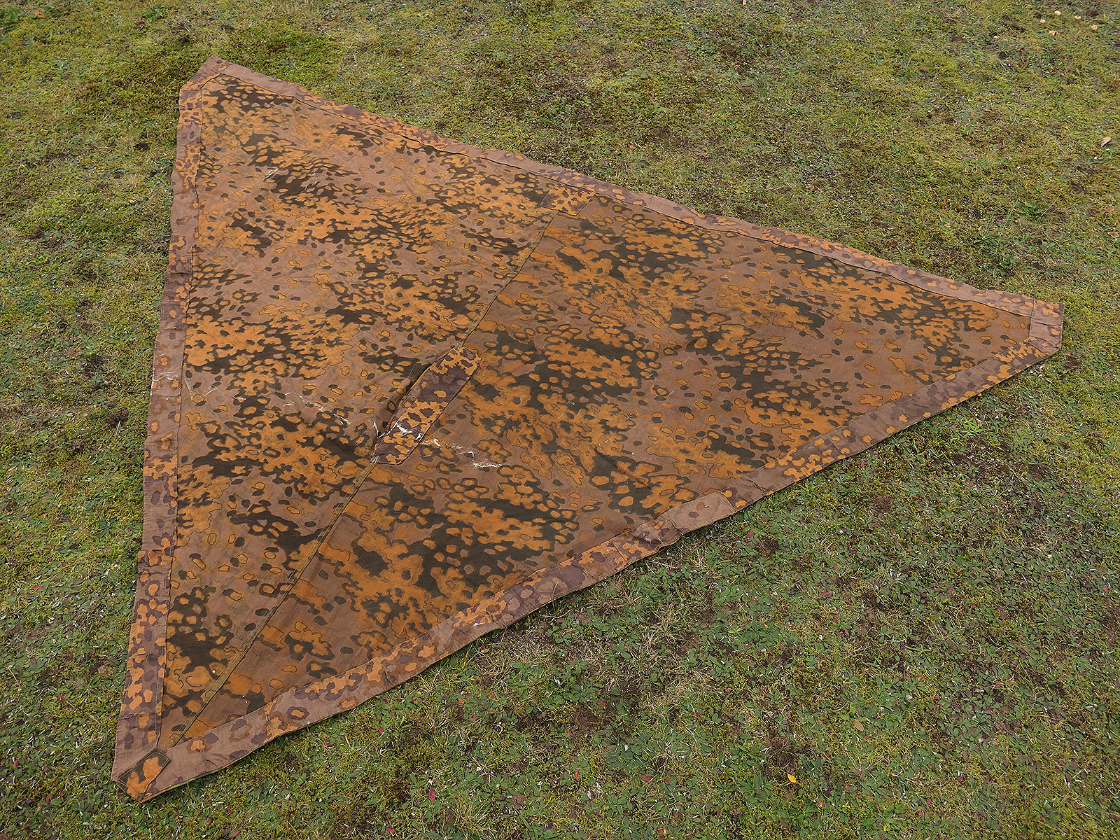 Original WW2 Waffen SS triangular camouflage tent sheet in oak leaf B camouflage, reversible from spring to autumn.