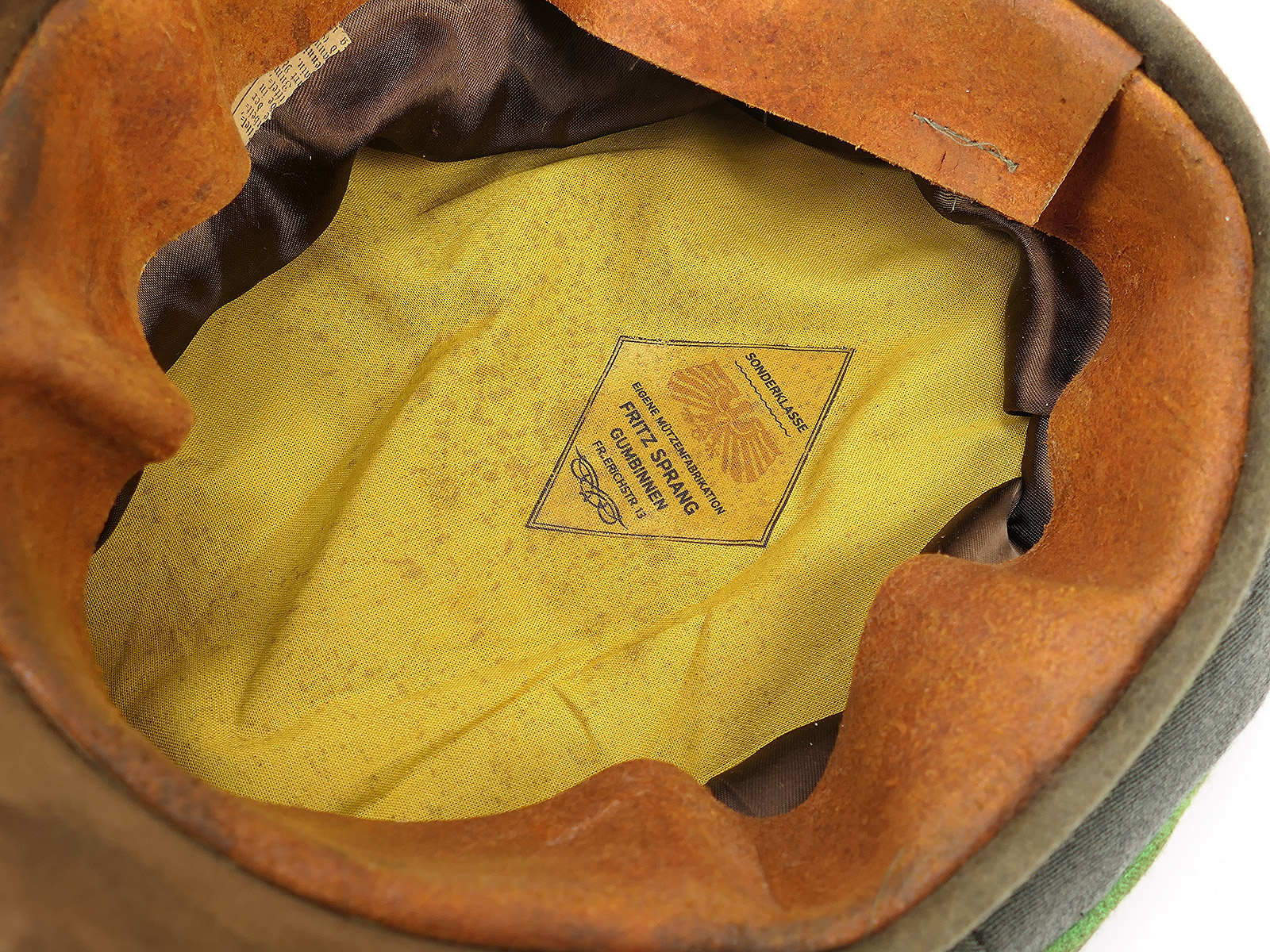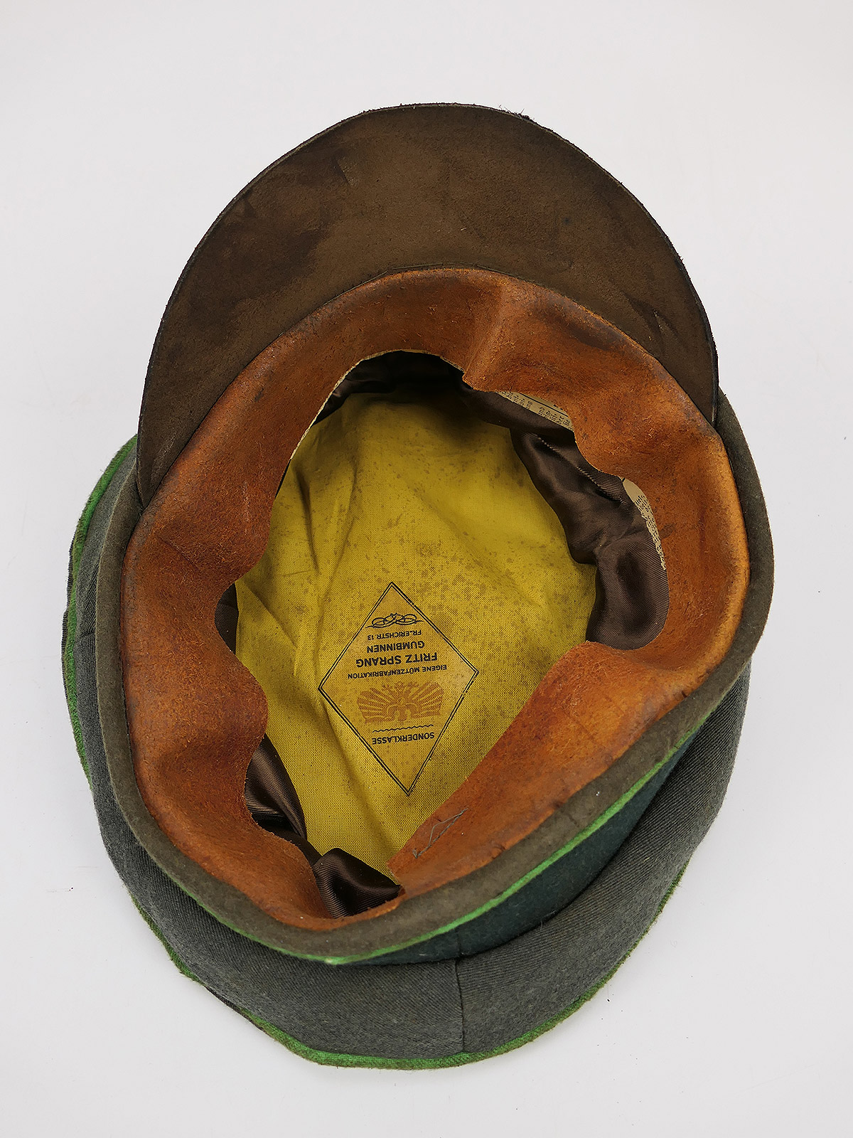 High-quality, custom-made piece from a small cap manufacturer, a worn item with clear signs of wear, soiling and additional ageing.