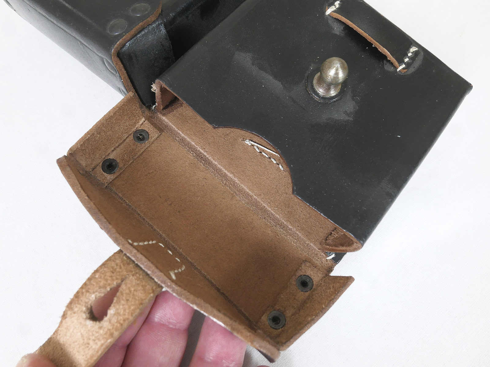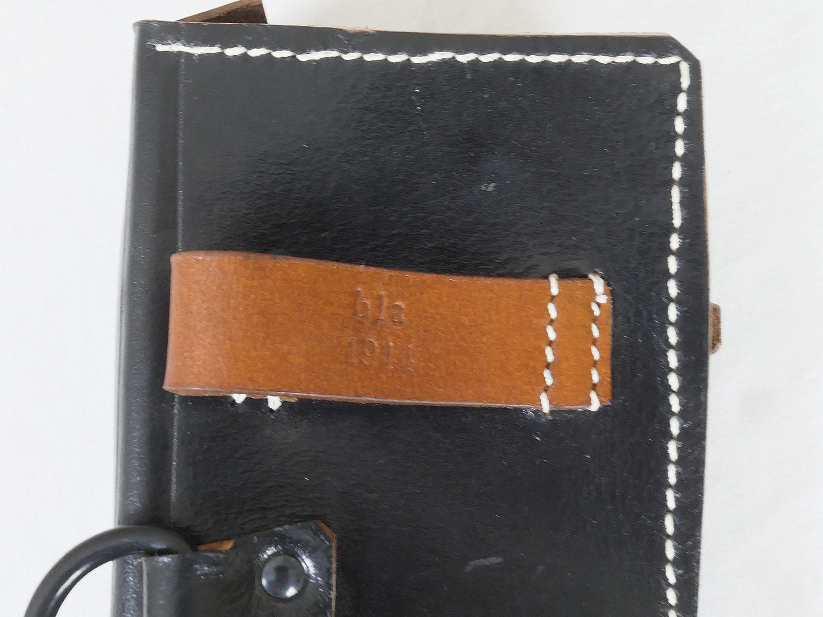 Manufacturer stamp bla 1944 on the leather flap, good workmanship, strong seams, stable but still soft leather.