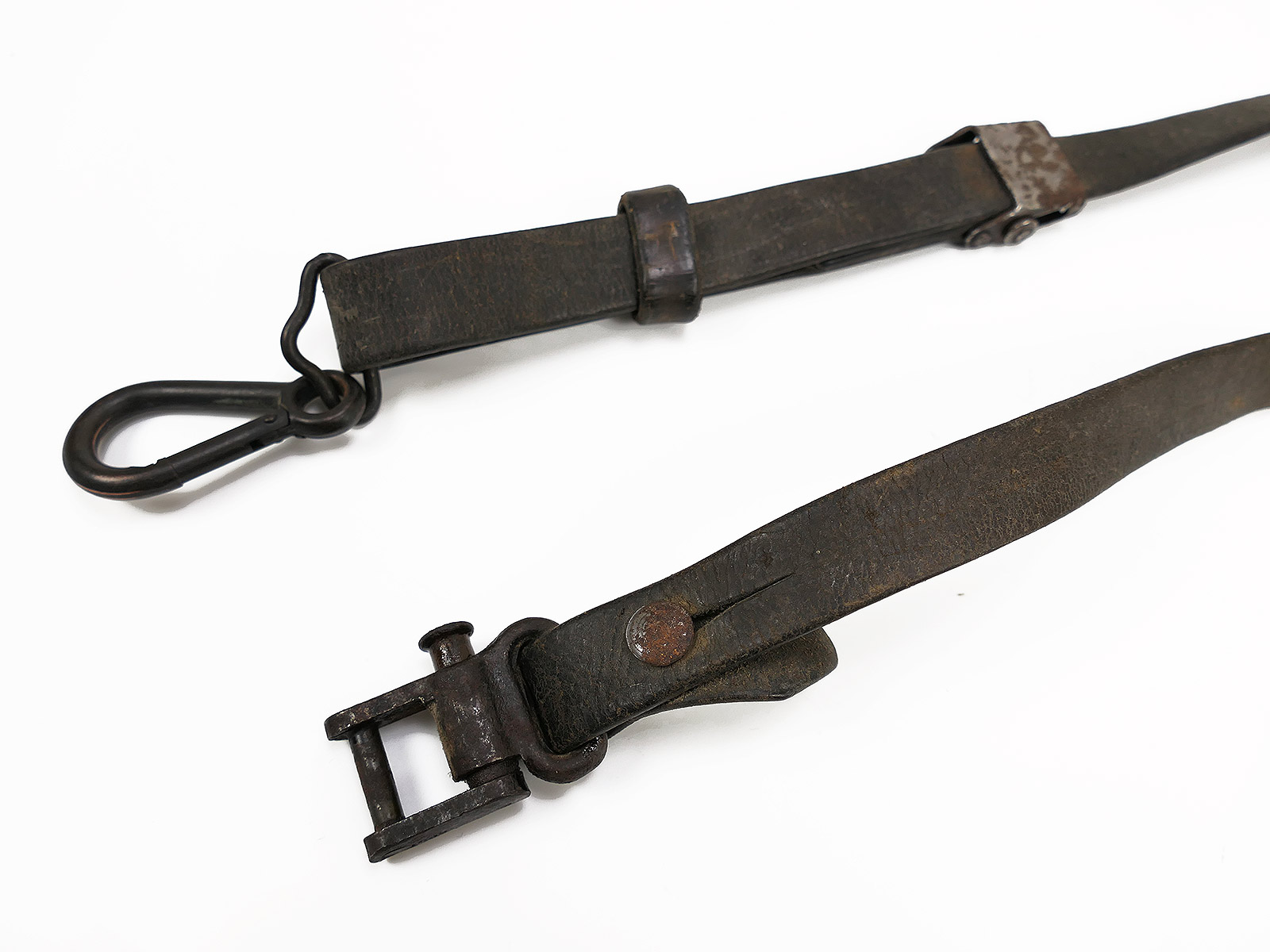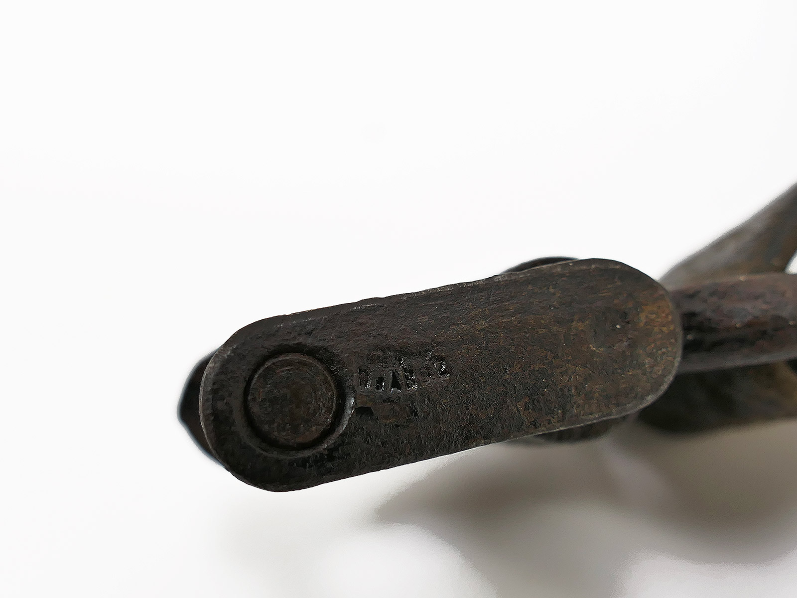 here is an example with a beautiful "collector's room patina", with a little dust, a little dirt, handling marks, darkened wood, matt shimmering metal - really great look!
