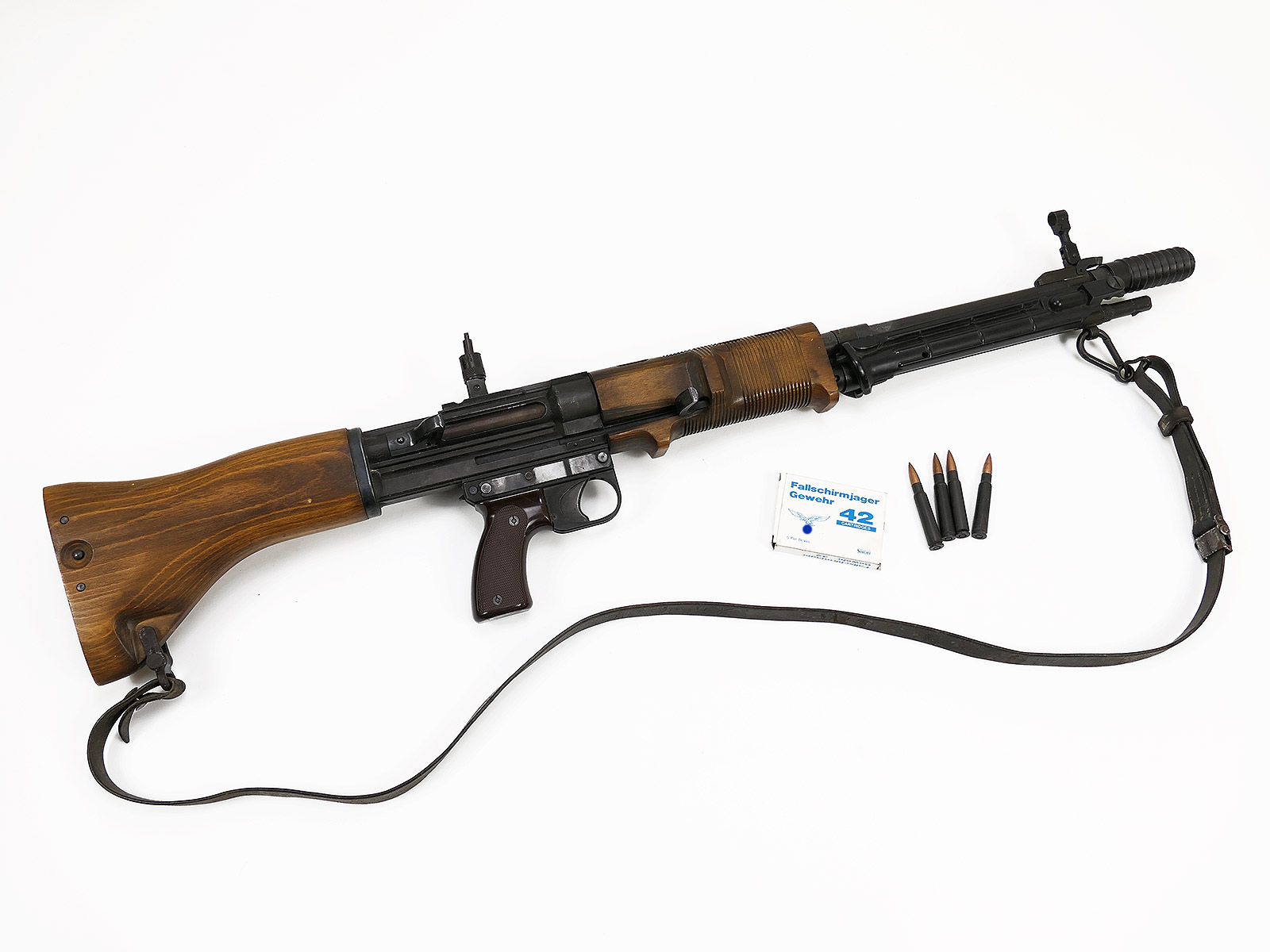 You will receive the FG complete as shown - FG42 with 4 deco rounds 8x57 / box and a carrying strap made from old parts.