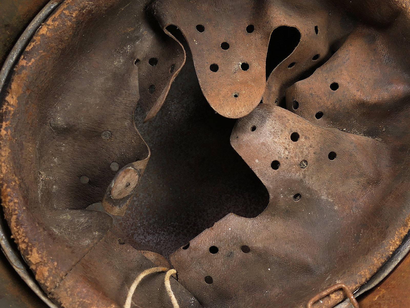 Reproduktion mit sehr schönem "Antik" Innenfutter und Kinnriemen, der Helm wurde aufwändig gealtert, mit einer Tarnlackierung und einem Scharfschützen Gesichtsschleier versehen.