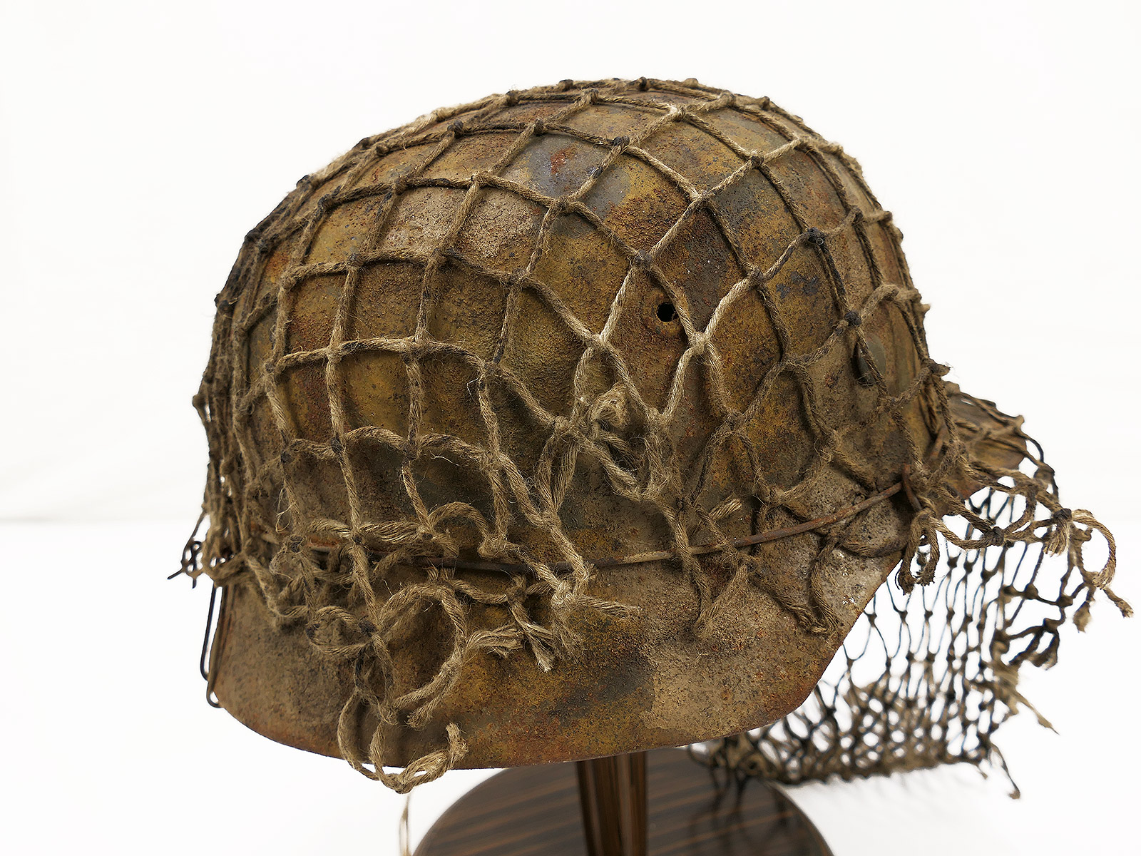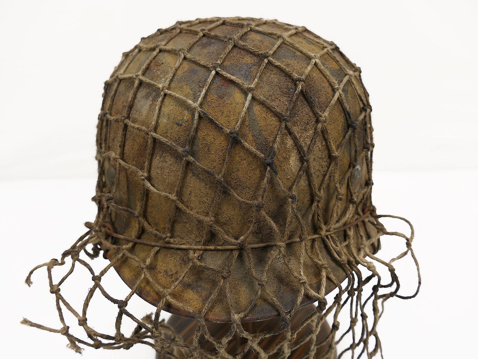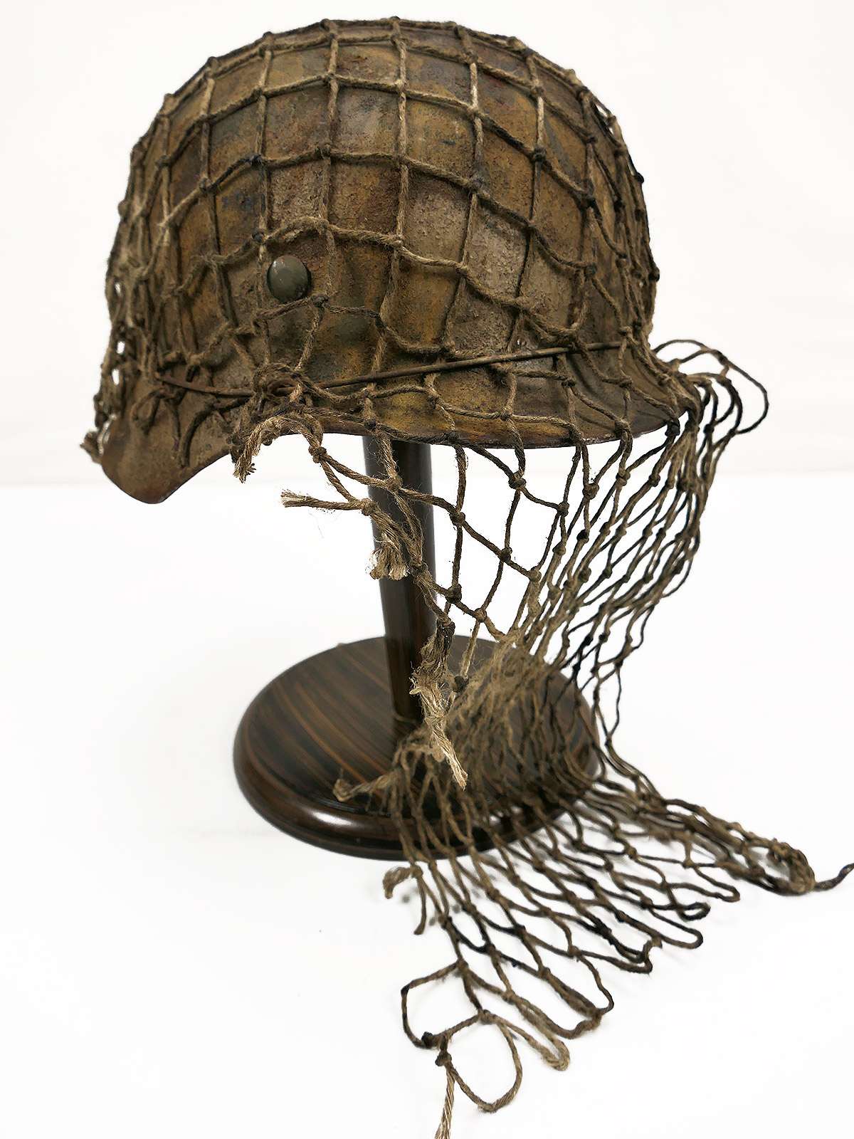 Wehrmacht Scharfschützen Stahlhelm M40 camouflage Tarnhelm mit Tarnschleier ANTIK BATTLE WORN Gr.59/60