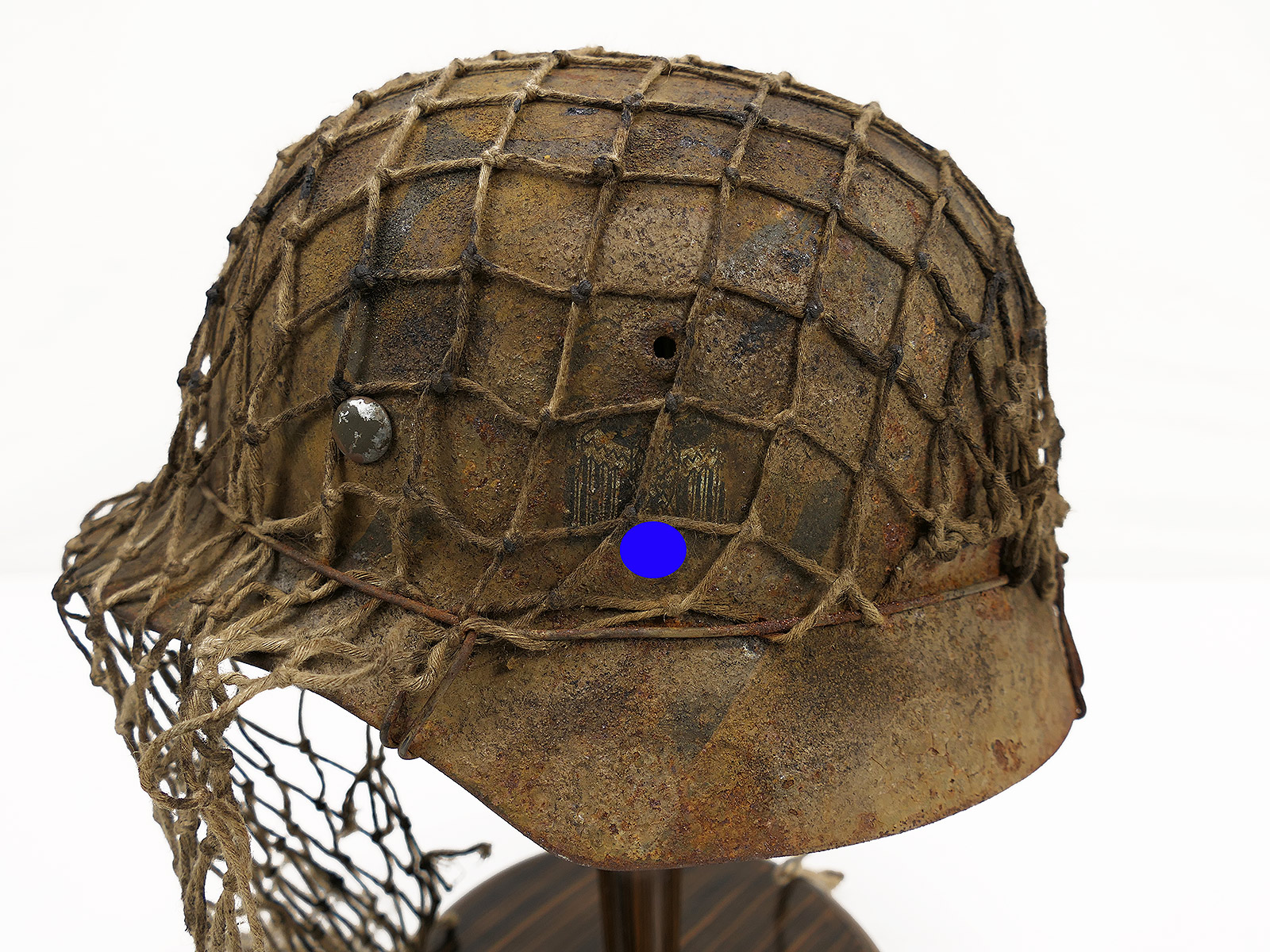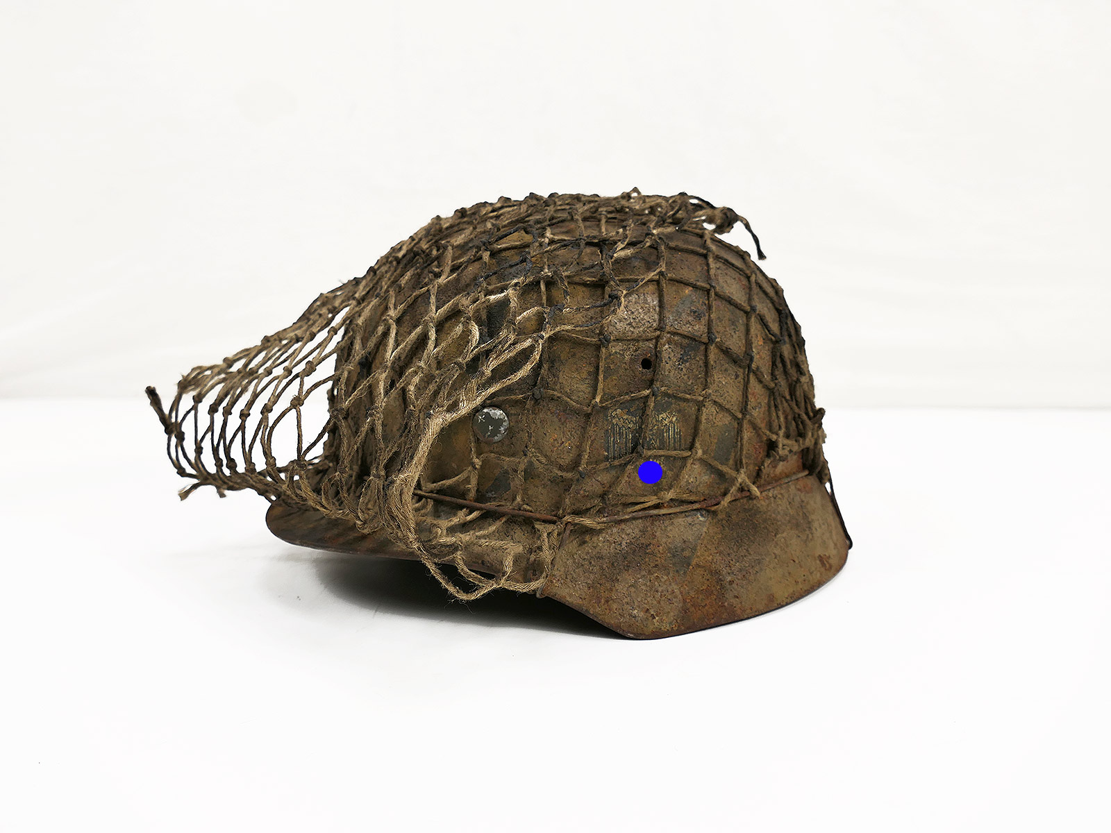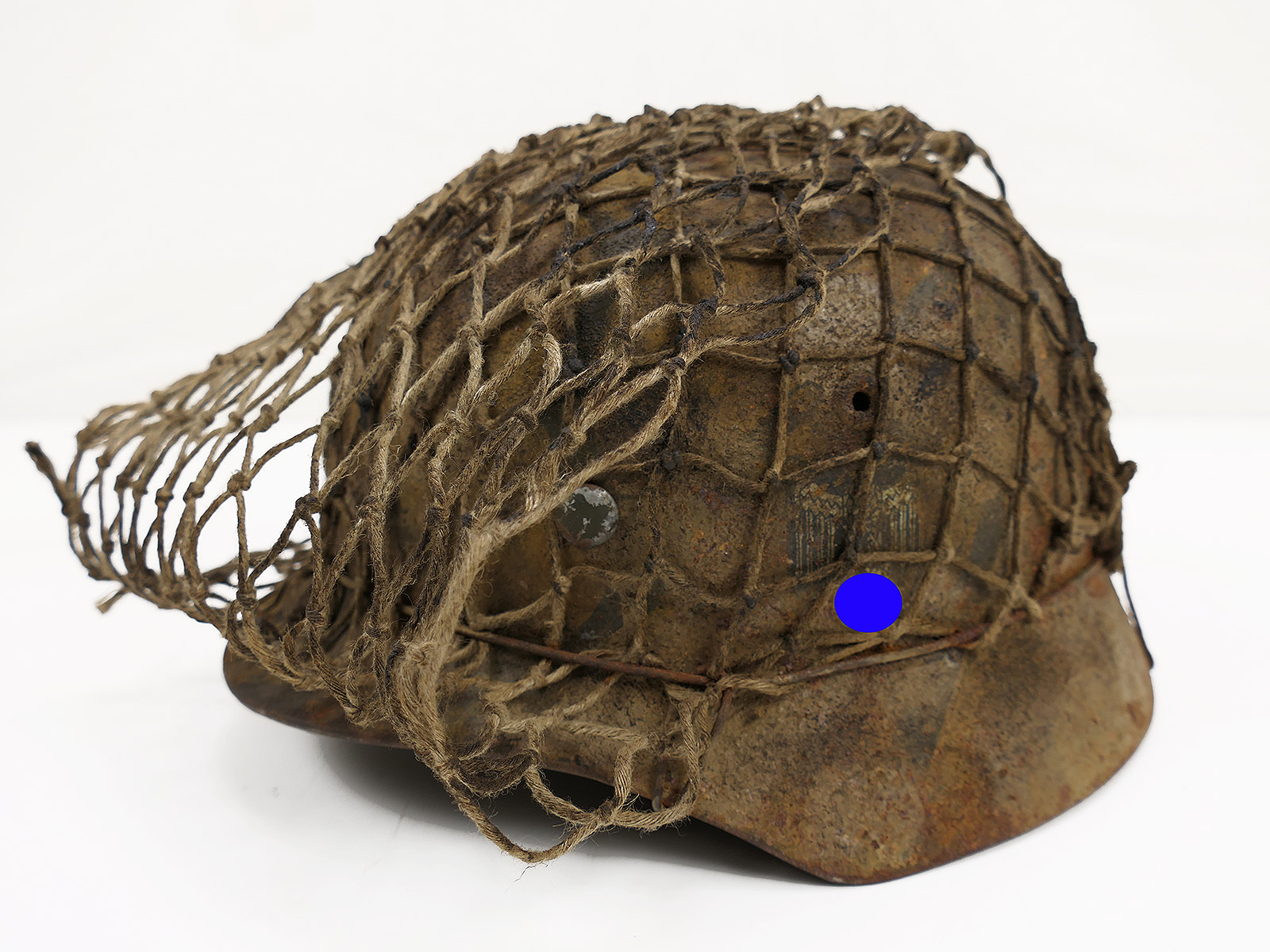 Wehrmacht Scharfschützen Stahlhelm M40 camouflage Tarnhelm mit Tarnschleier ANTIK BATTLE WORN Gr.59/60