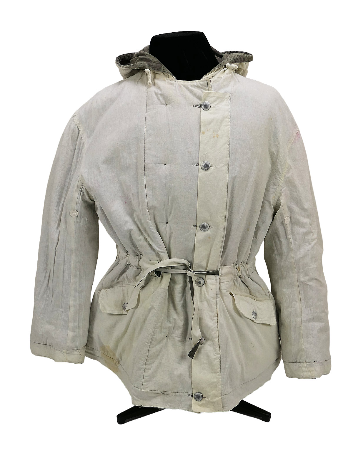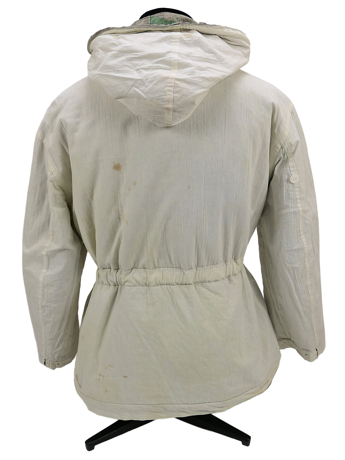 Reversible from splinter camouflage to white and therefore wearable on both sides.