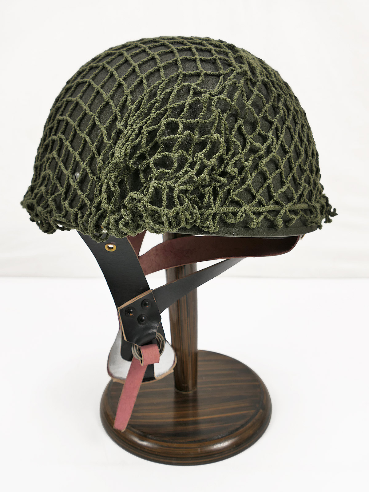 WW2 Britischer Fallschirmjägerhelm Stahlhelm Fallschirmjäger Paratrooper Gr. 58/59 Helmnetz + Camo Material