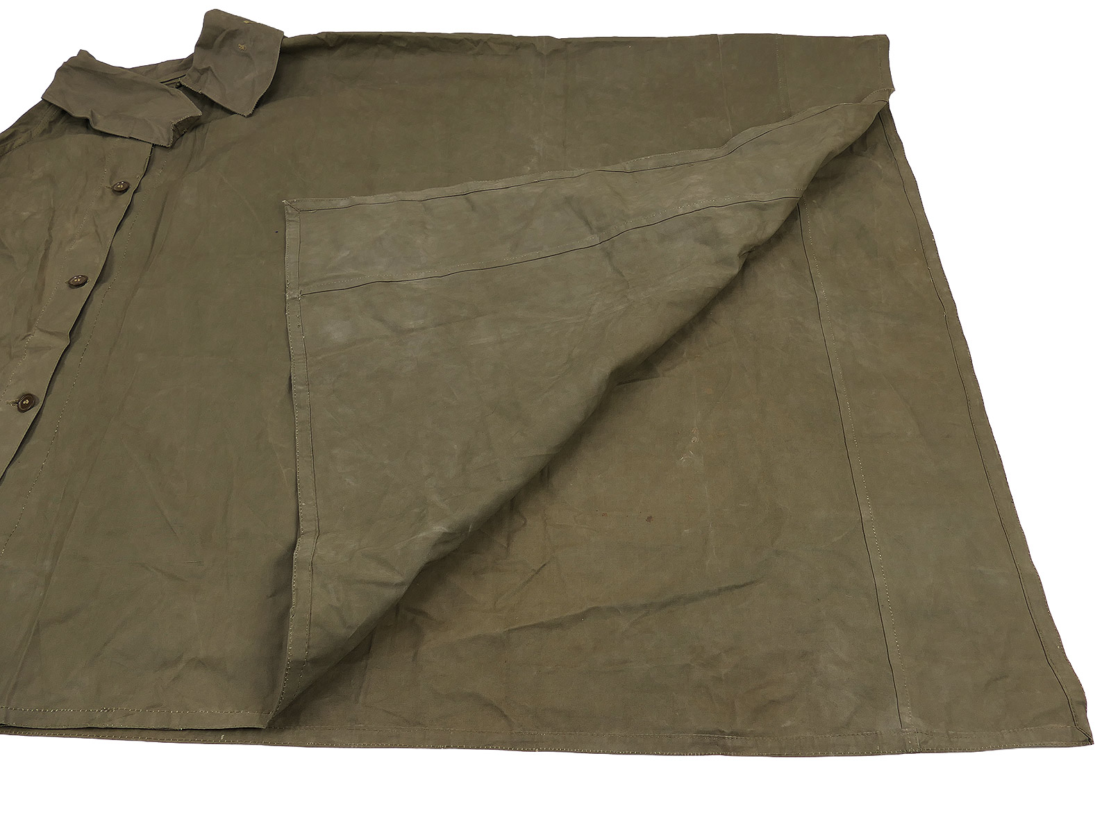 MKVII British Army olive drab waterproof cape/pad. This is a cape/pad made from rubberised cotton fabric.