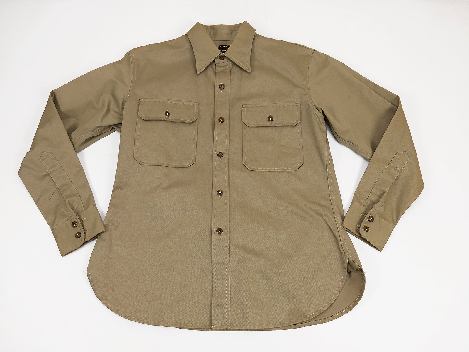 WW2 US ARMY Chino Uniform Shirt Summer Officers Rangoon Size Large COLLECTION BATTLE WORN