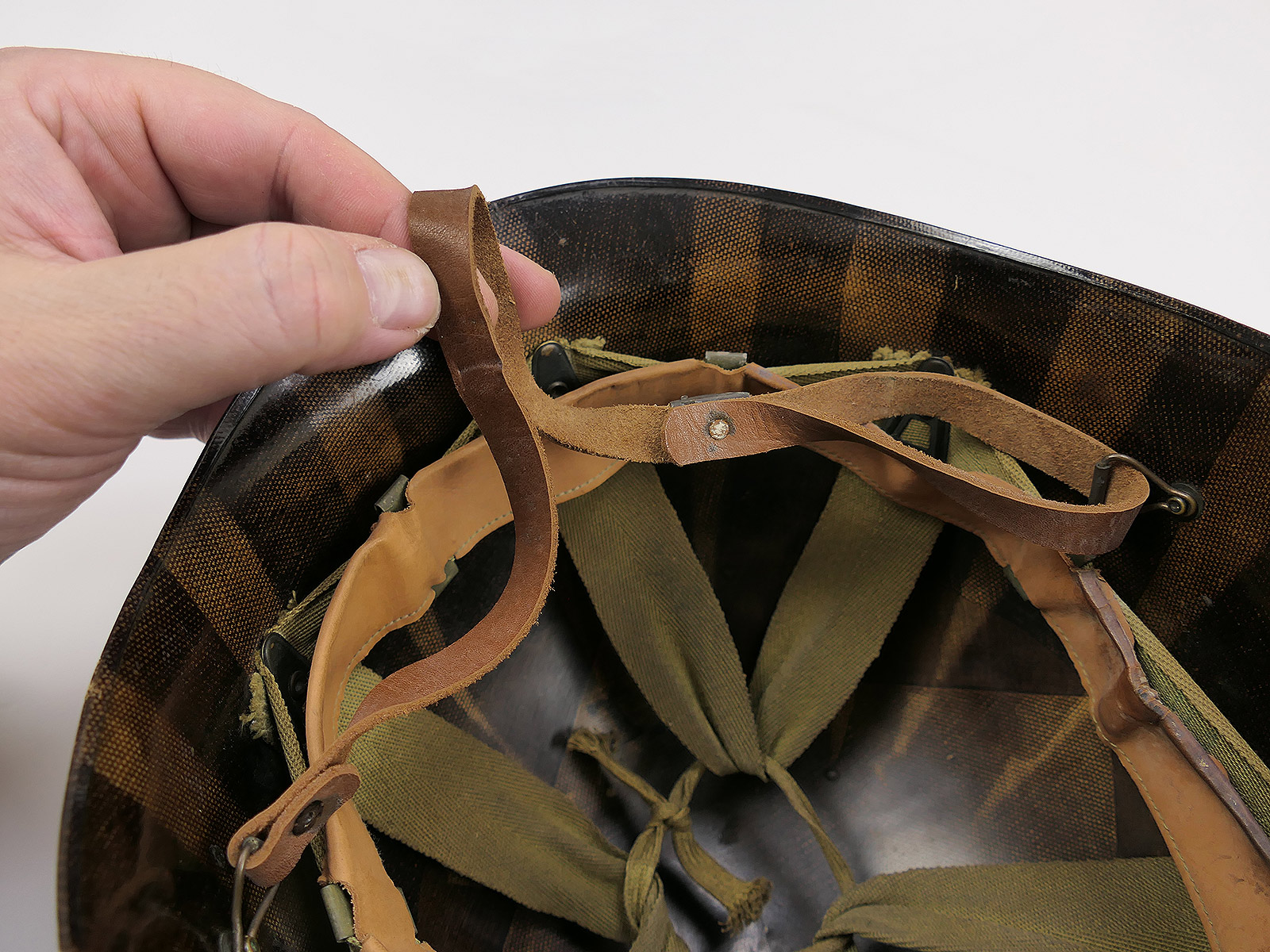 Original US WW2 M1 steel helmet, original WW2, fold of the beading in front,