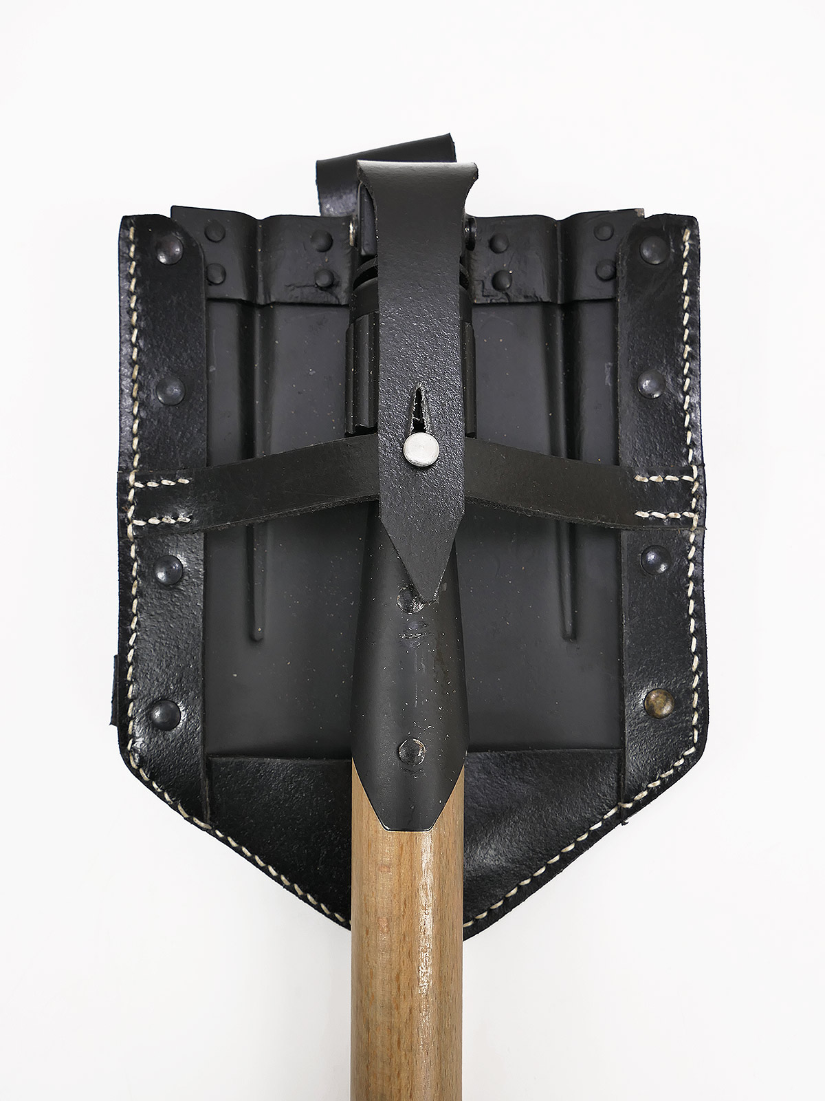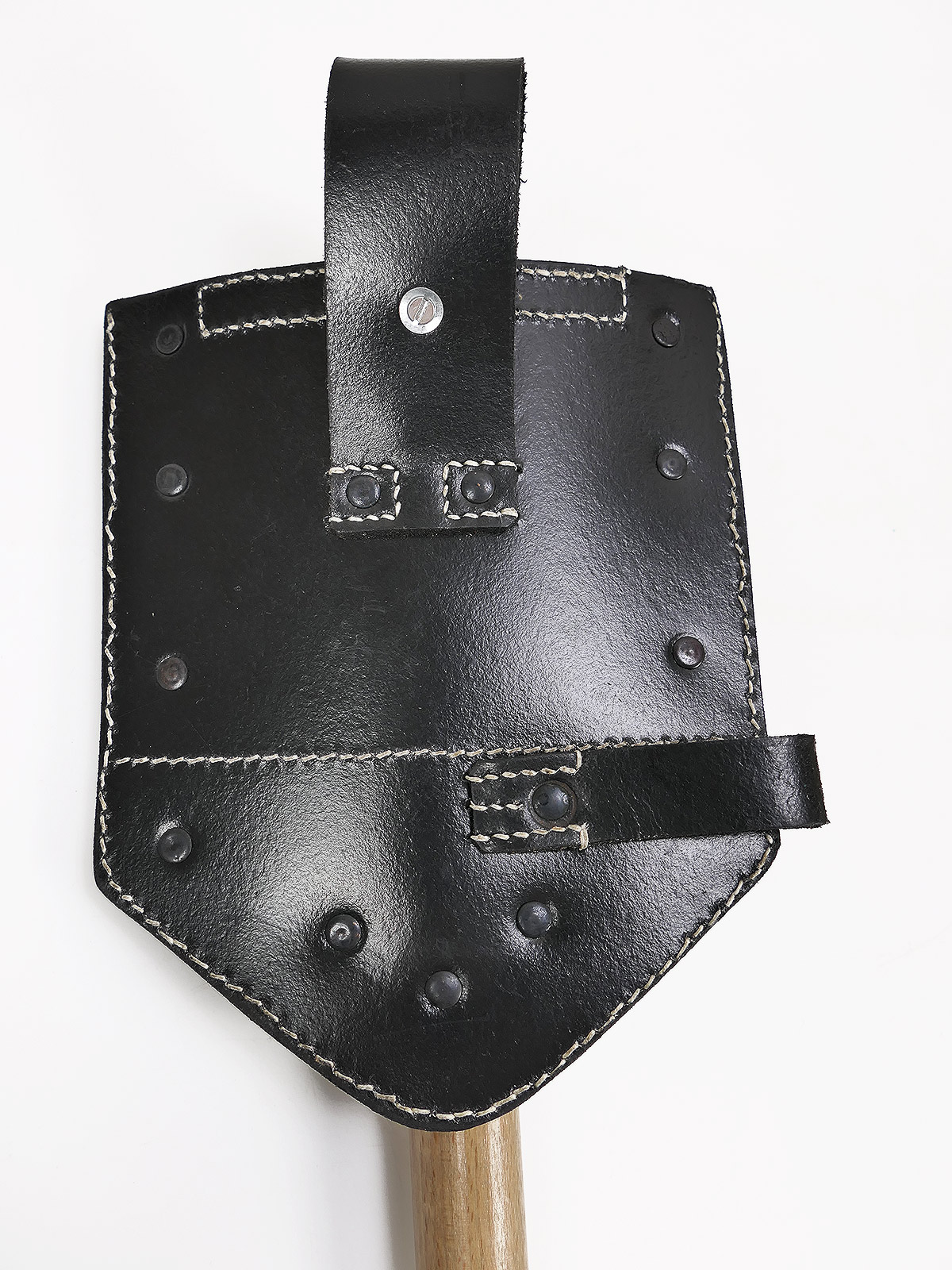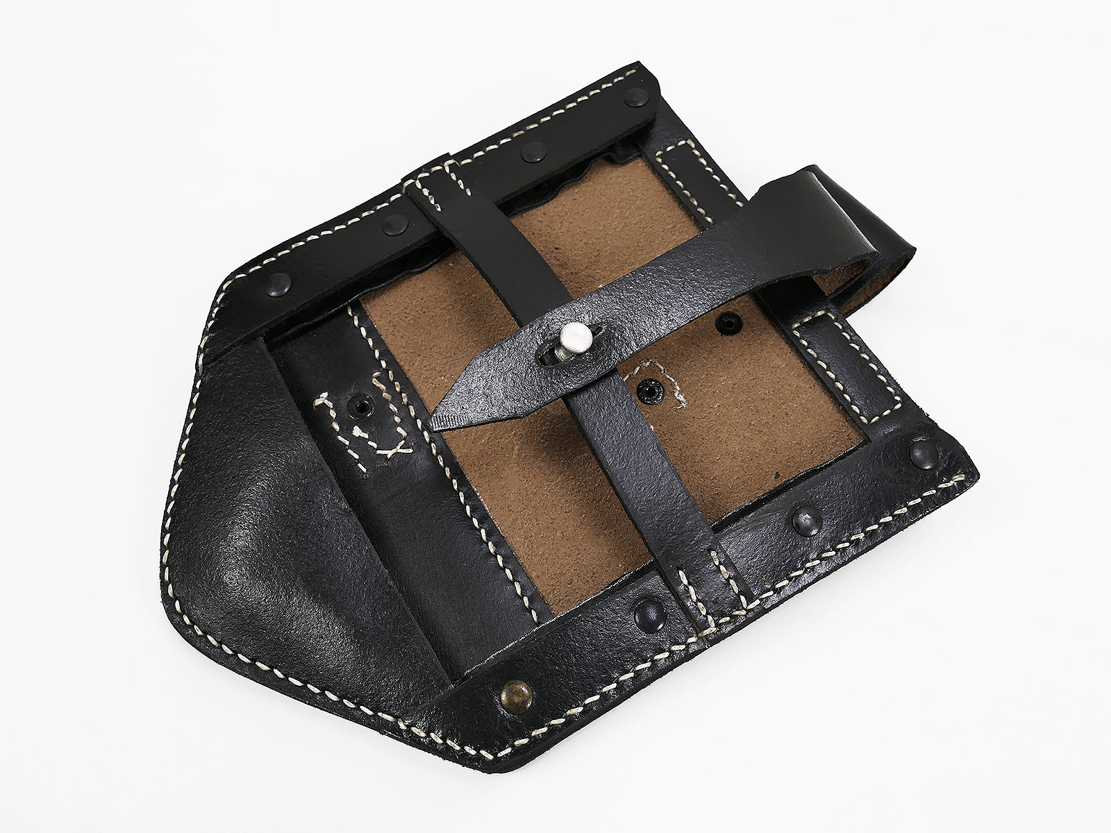 Wehrmacht folding spade with spade bag 1st model made of leather.